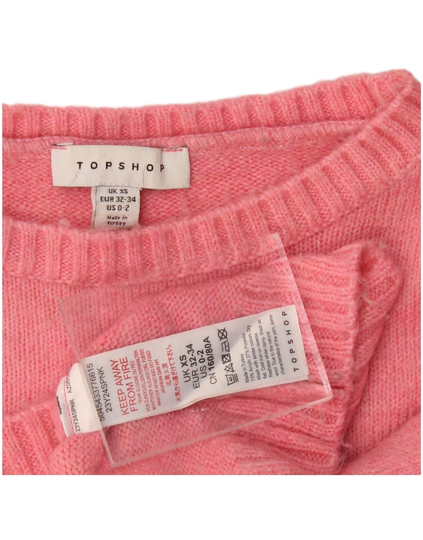 TOPSHOP Womens Crop Oversized Crew Neck Jumper Sweater UK 6 XS Pink
