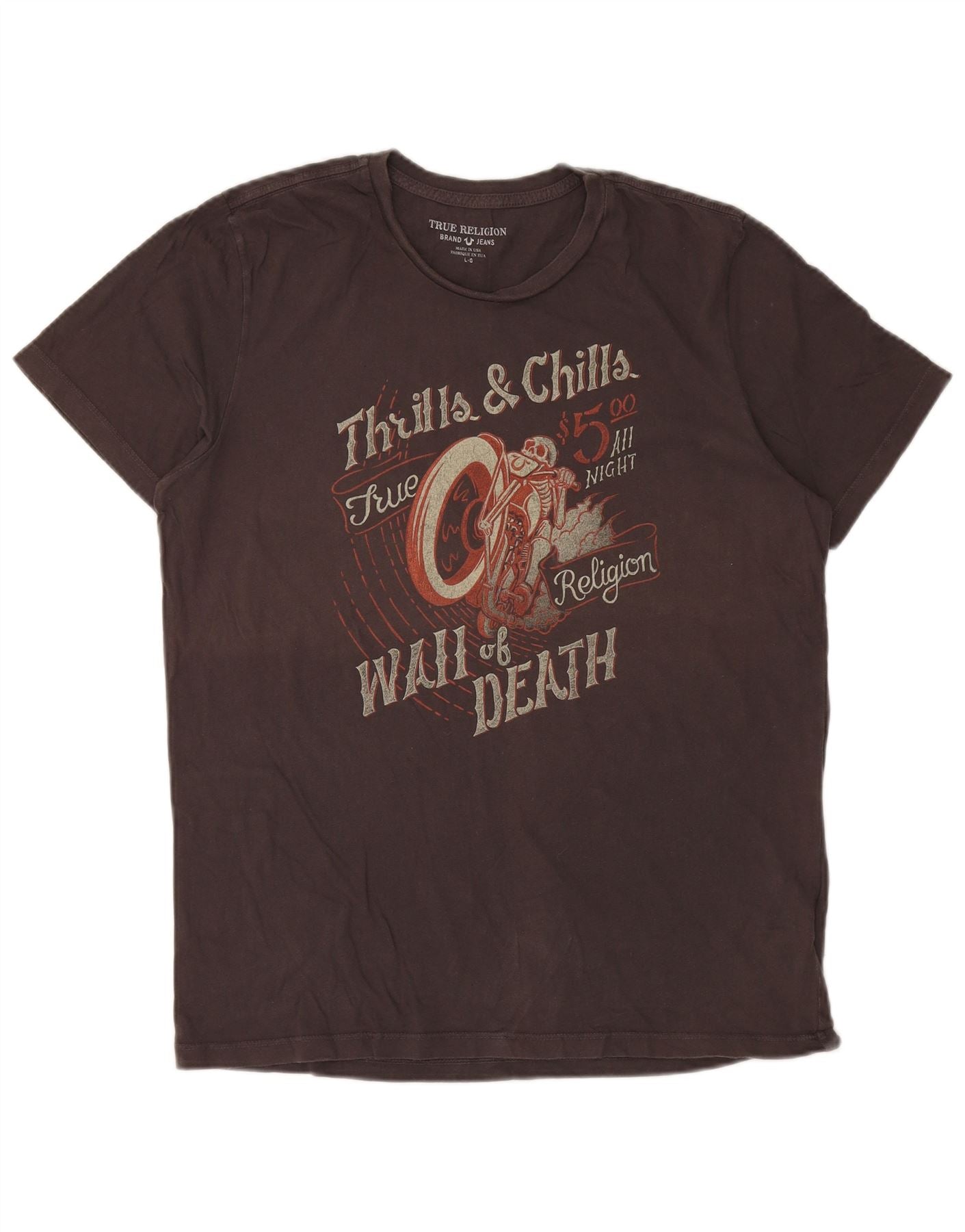 - AI opis: Ovaj True Religion muški gornji dio majice s grafičkim motivima izrađen je od mekog smeđeg žerseja. Ima klasični okrugli izrez i kratke rukave. Pravilan kroj osigurava udobno nošenje. Odvažni retro grafički ispis krasi prednju stranu, prikazujući prepoznatljivi dizajn Zida smrti. Ova grafika dodaje jedinstveni naglasak biciklističkom stilu, savršen za ležeran izgled.