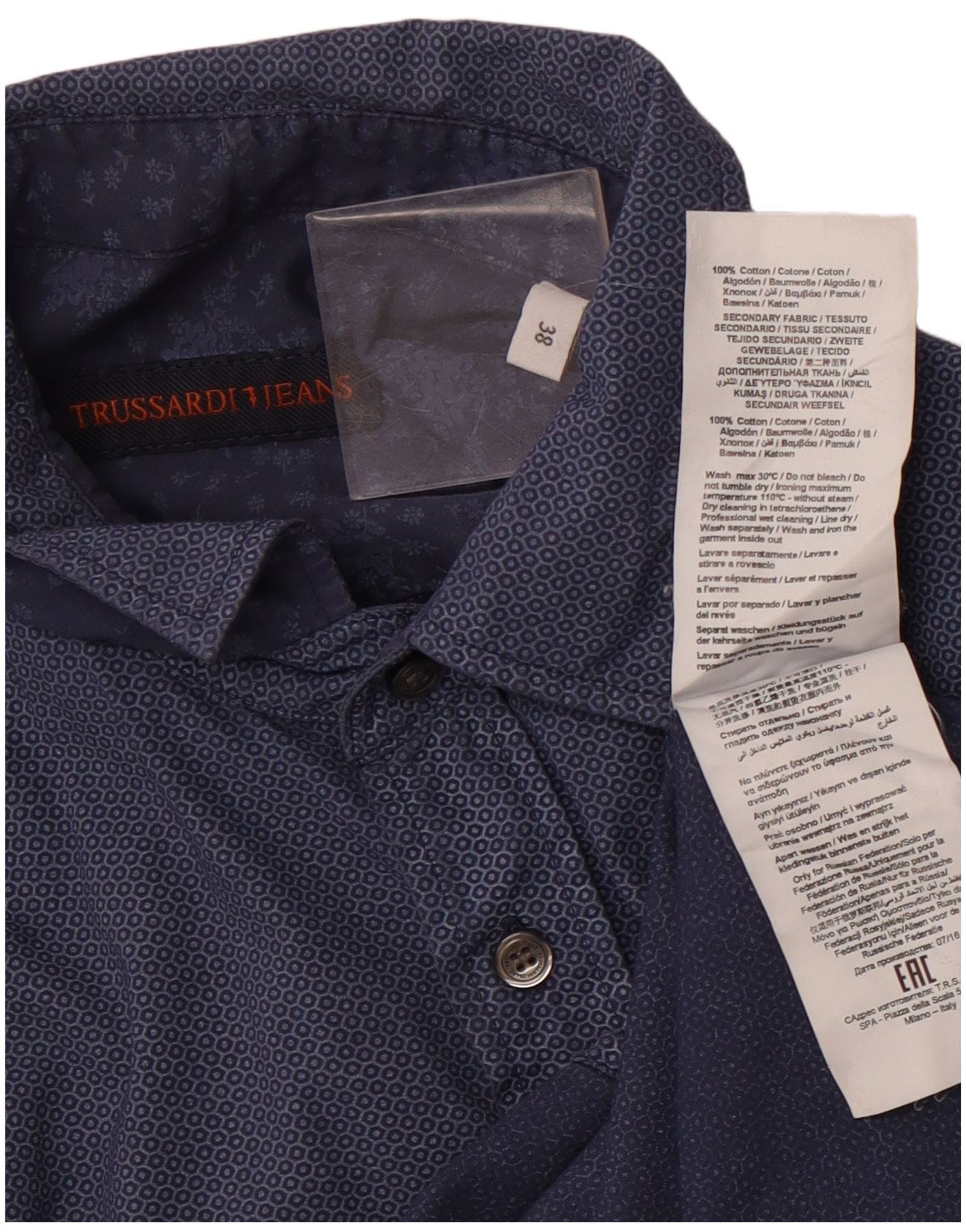 TRUSSARDI JEANS Muška košulja veličina 38 Srednja tamnoplava geometrijska pamuk