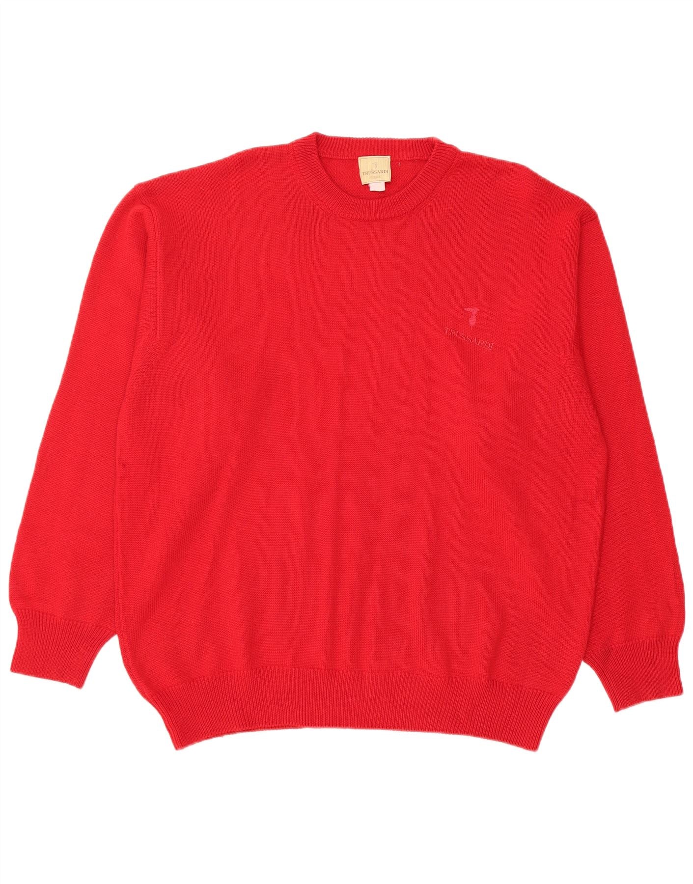 TRUSSARDI muški pulover s okruglim izrezom XL od crvene merino vune
