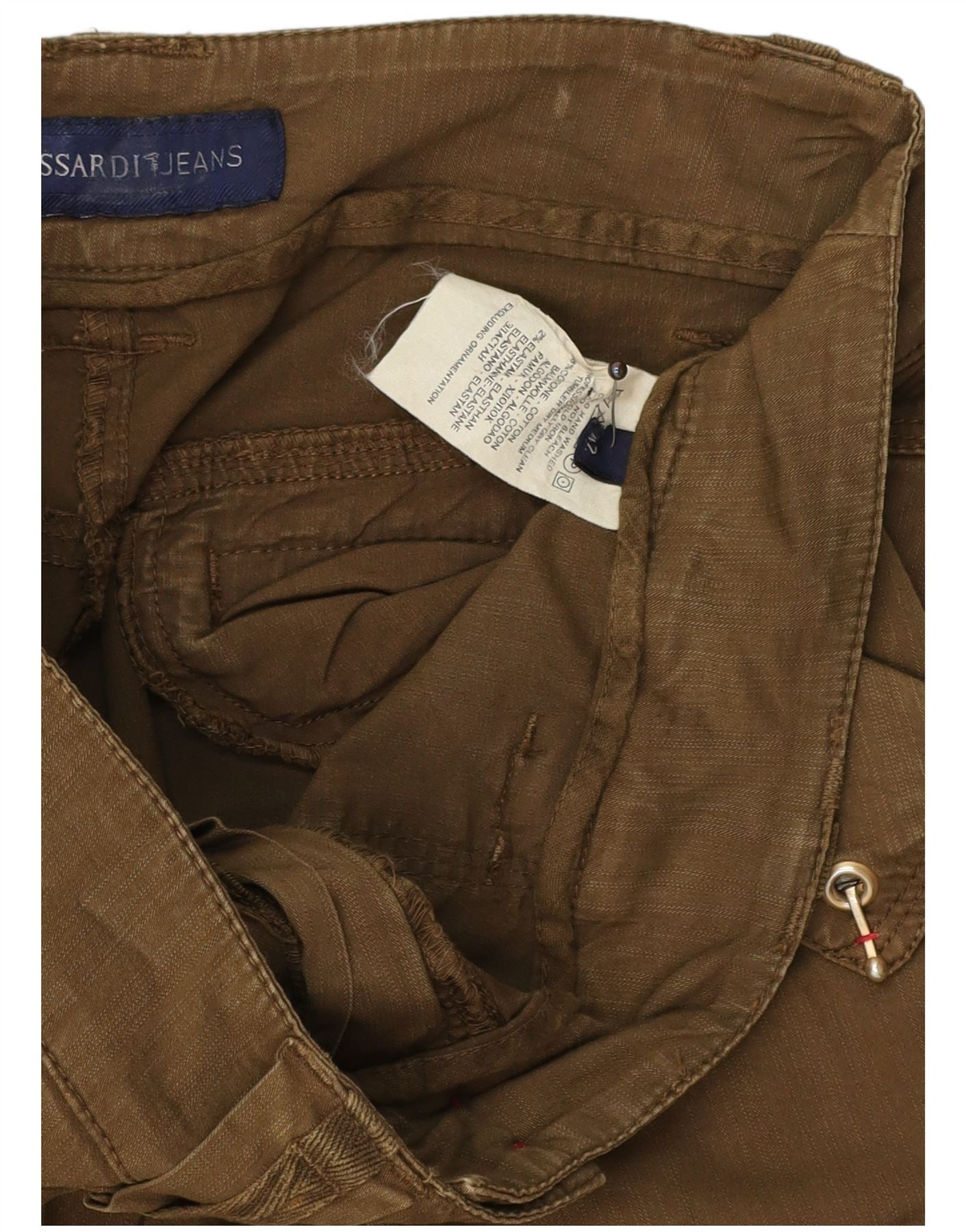 TRUSSARDI Womens Bootcut Casual Trousers IT 42 Medium W23 L34 Khaki Cotton