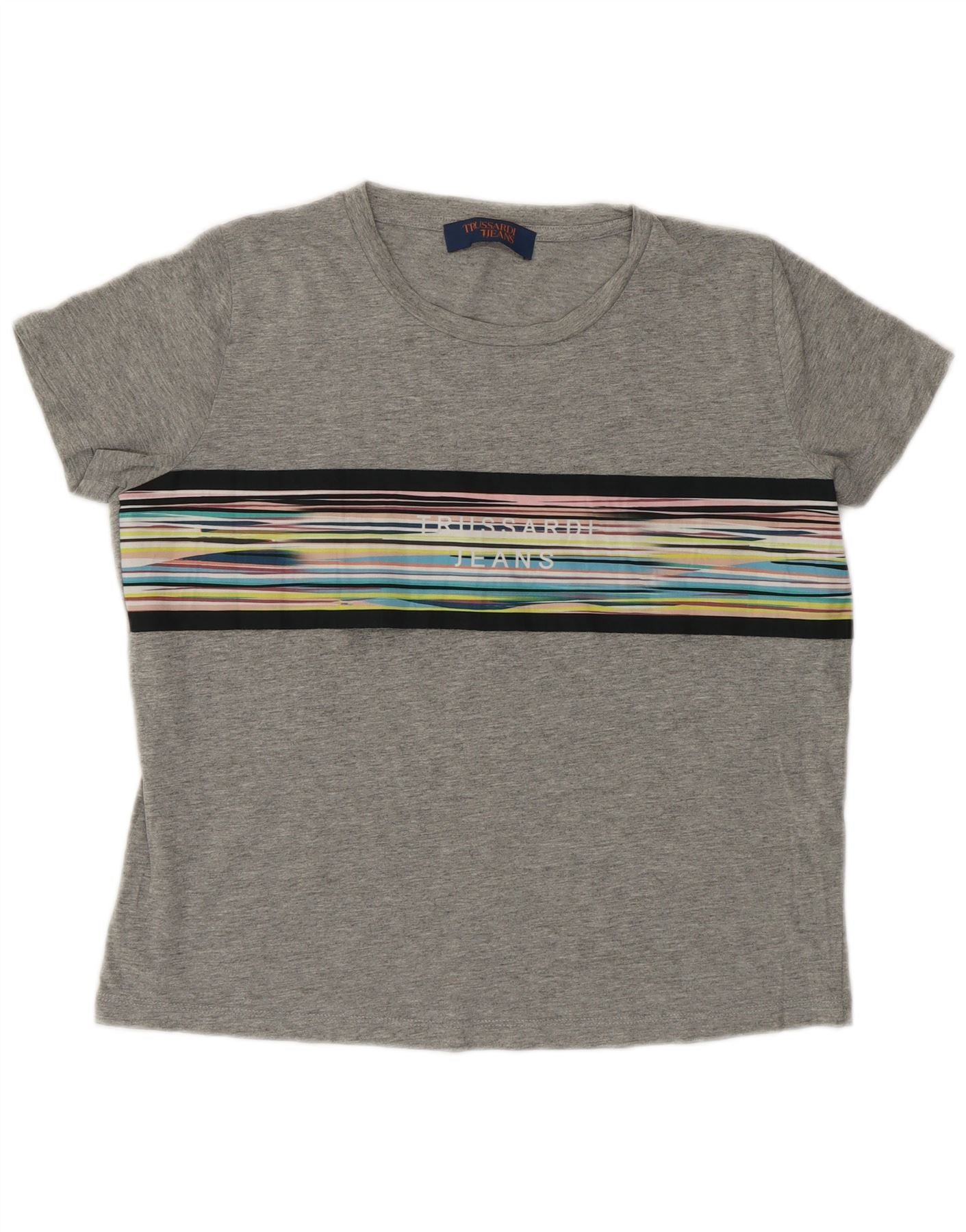 Trussardi ženska majica kratkih rukava s grafičkim motivima UK 14 srednje sive pruge