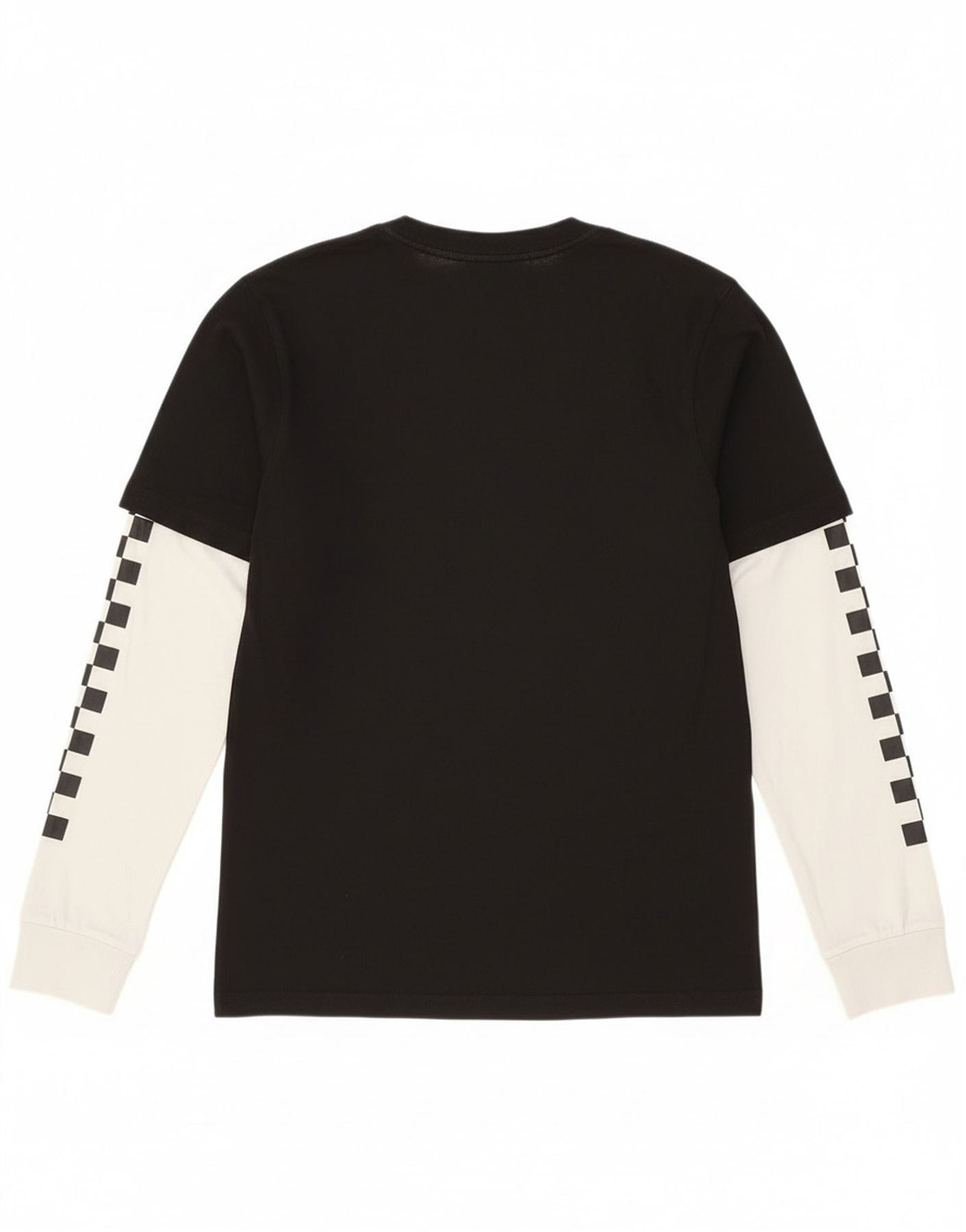 - AI opis: Ovaj Vans gornji dio majice s grafičkim motivima za dječake izrađen je od mekog 100-postotnog pamučnog žerseja. Ima crni gornji dio kratkih rukava slojevito preko kontrastnih dugih rukava. Okrugli ovratnik i pravilan kroj osiguravaju udobnost i lakoću nošenja. Odvažna grafika logotipa Vans krasi prednji dio. Dugi rukavi imaju prepoznatljiv karirani uzorak. Ovaj dizajn pulovera nudi elegantan, prilagođen kroj.