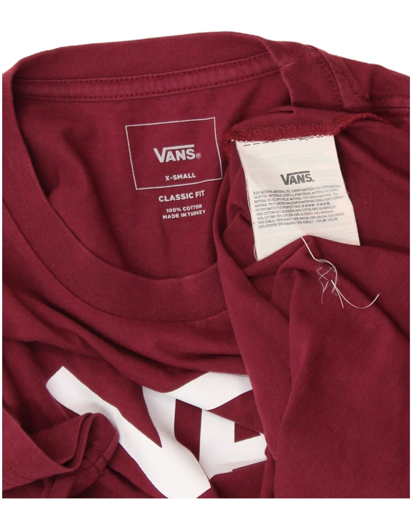 VANS Ženska majica kratkih rukava klasičnog kroja UK 6 XS Bordo pamuk