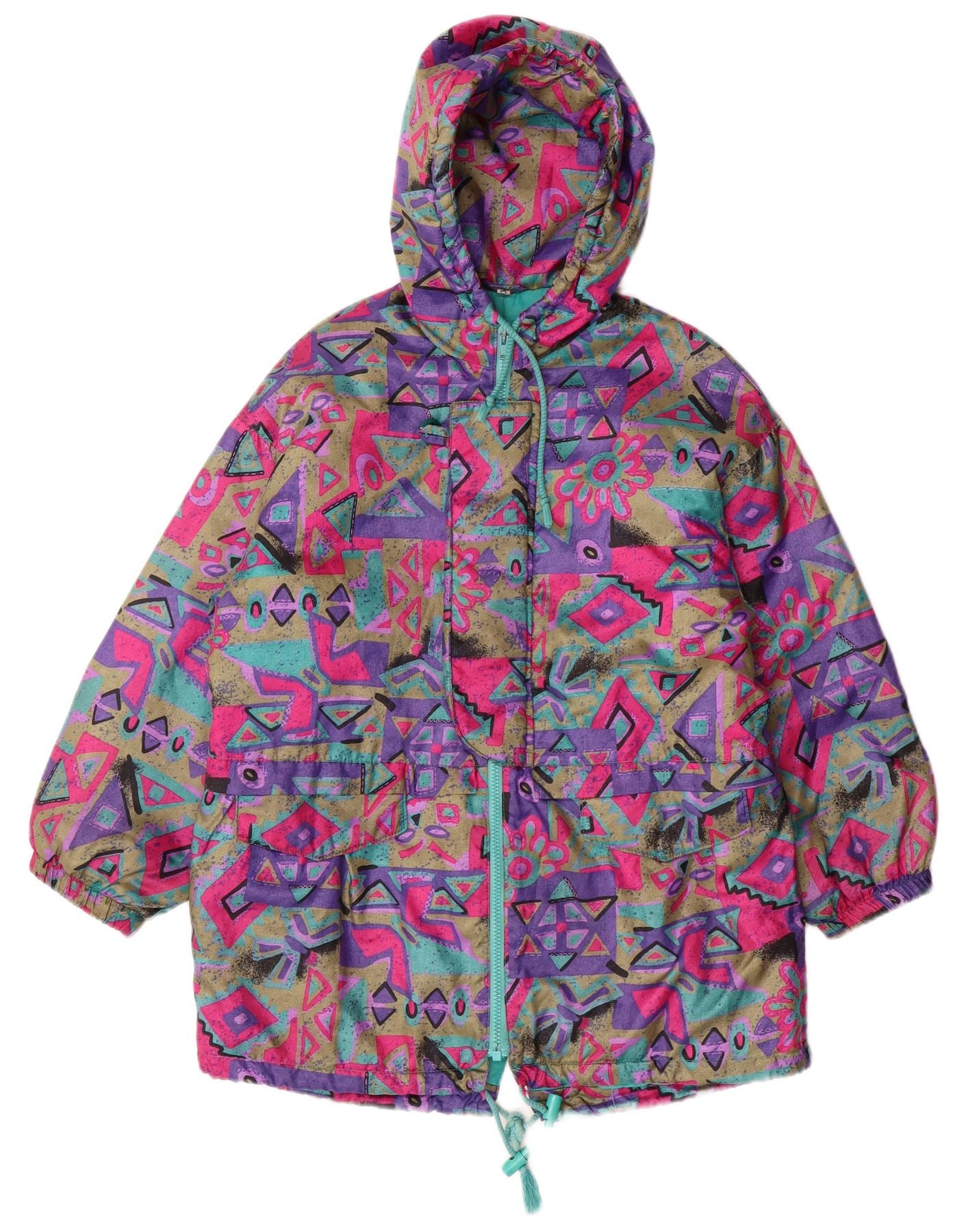 VINTAGE Vjetrovka s kapuljačom za djevojčice 15-16 godina Raznobojna geometrijska