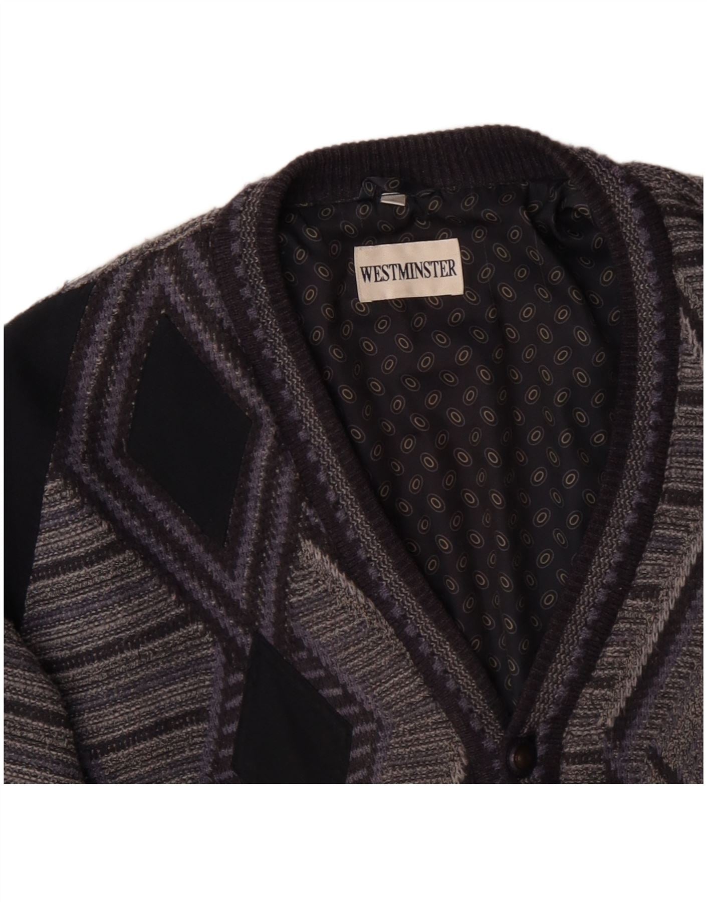 VINTAGE muški kardigan pulover XL sivi geometrijski akril