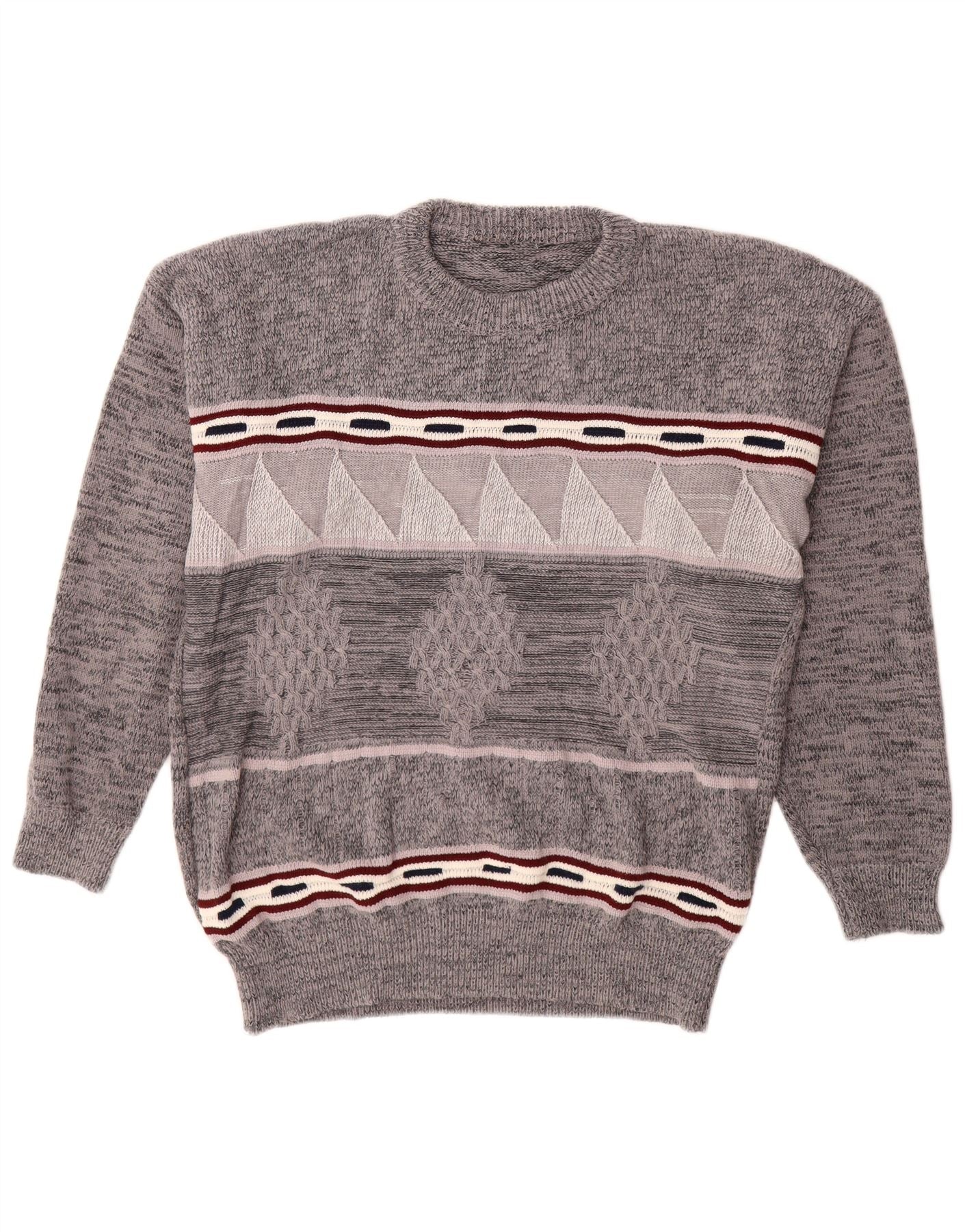VINTAGE muški pulover s okruglim izrezom, veliki sivi geometrijski