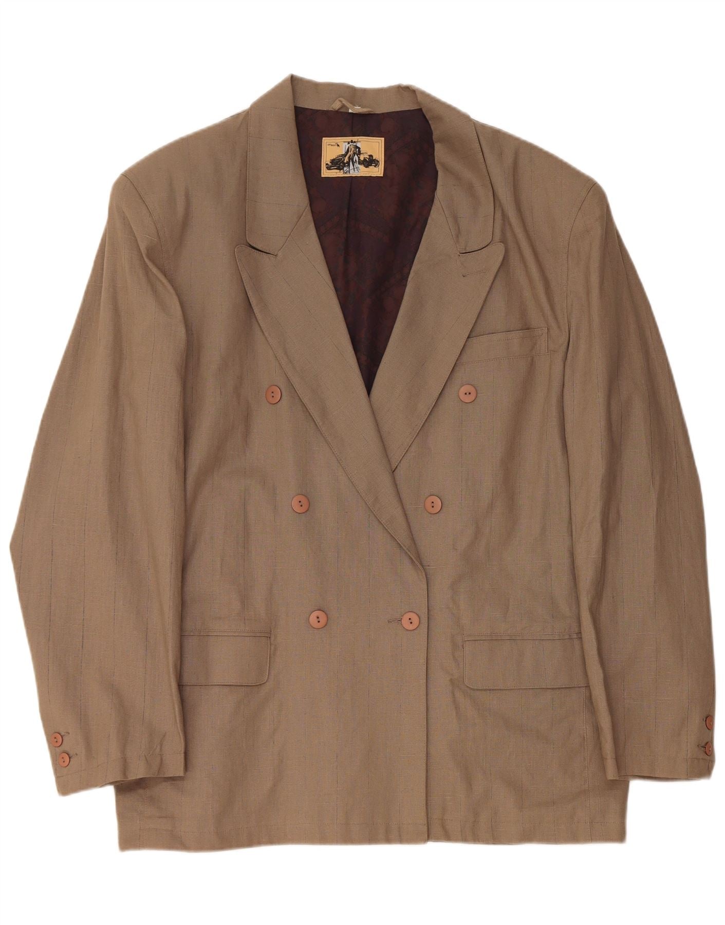 VINTAGE muška jakna s dvostrukim kopčanjem EU 56 3XL od smeđeg lana