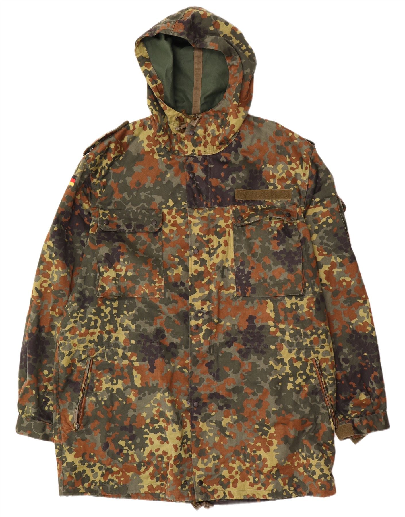 VINTAGE Mens Hooded Military Jacket UK 42 XL Khaki Camouflage Cotton Army