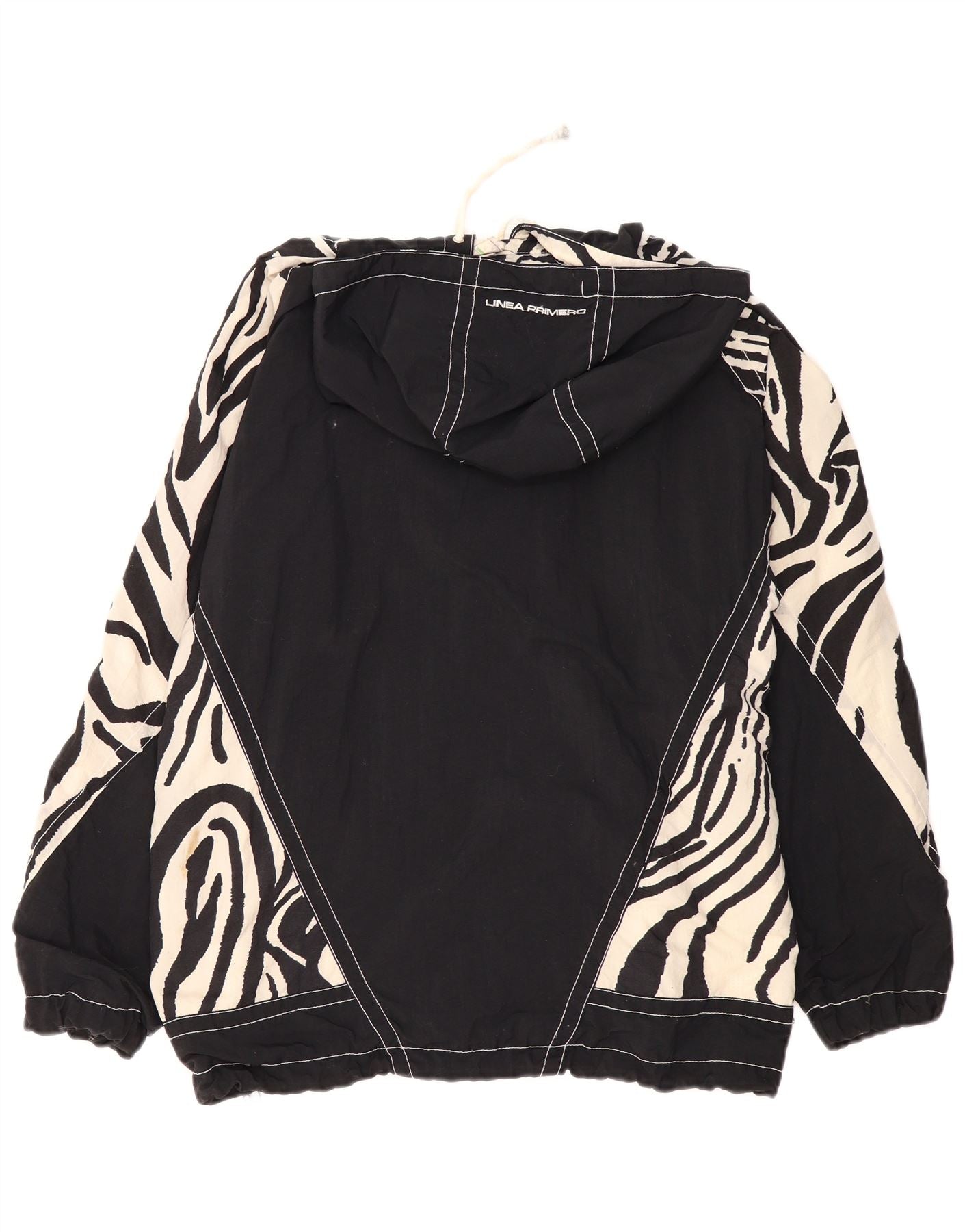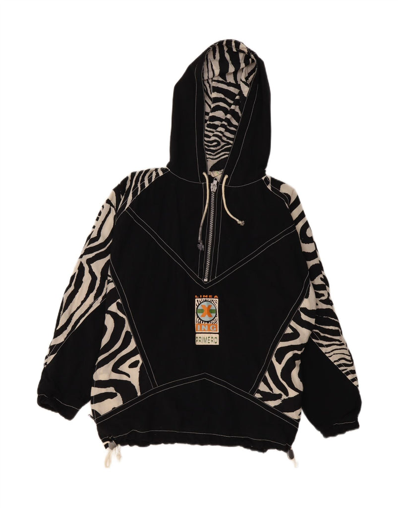 VINTAGE muška anorak jakna s kapuljačom širokog kroja UK 36 Mali crni životinjski print