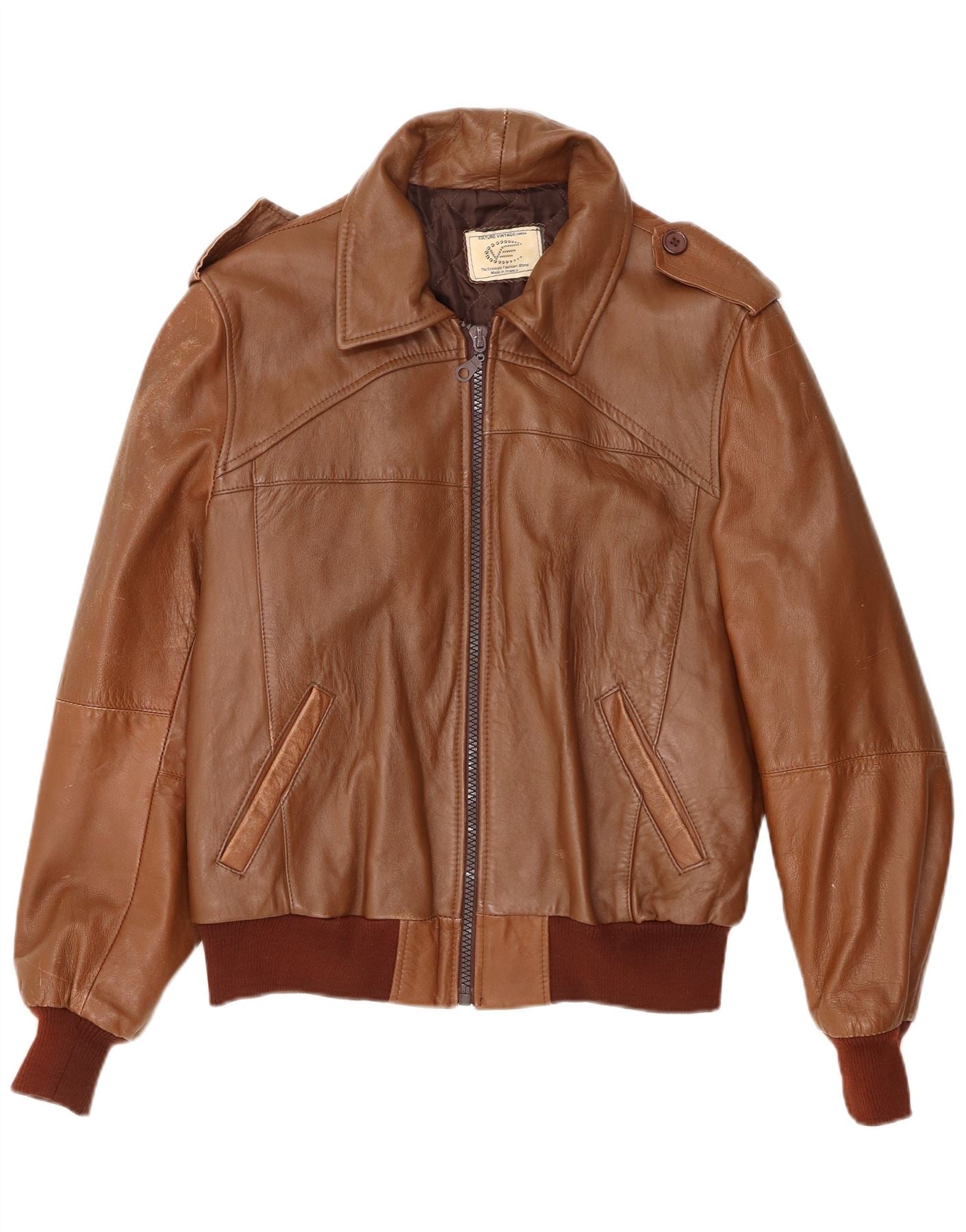 Home > Vintage kožne jakne > Vintage smeđe kožne jakne > VINTAGE muška vojna kožna jakna UK 40 velika smeđa koža
