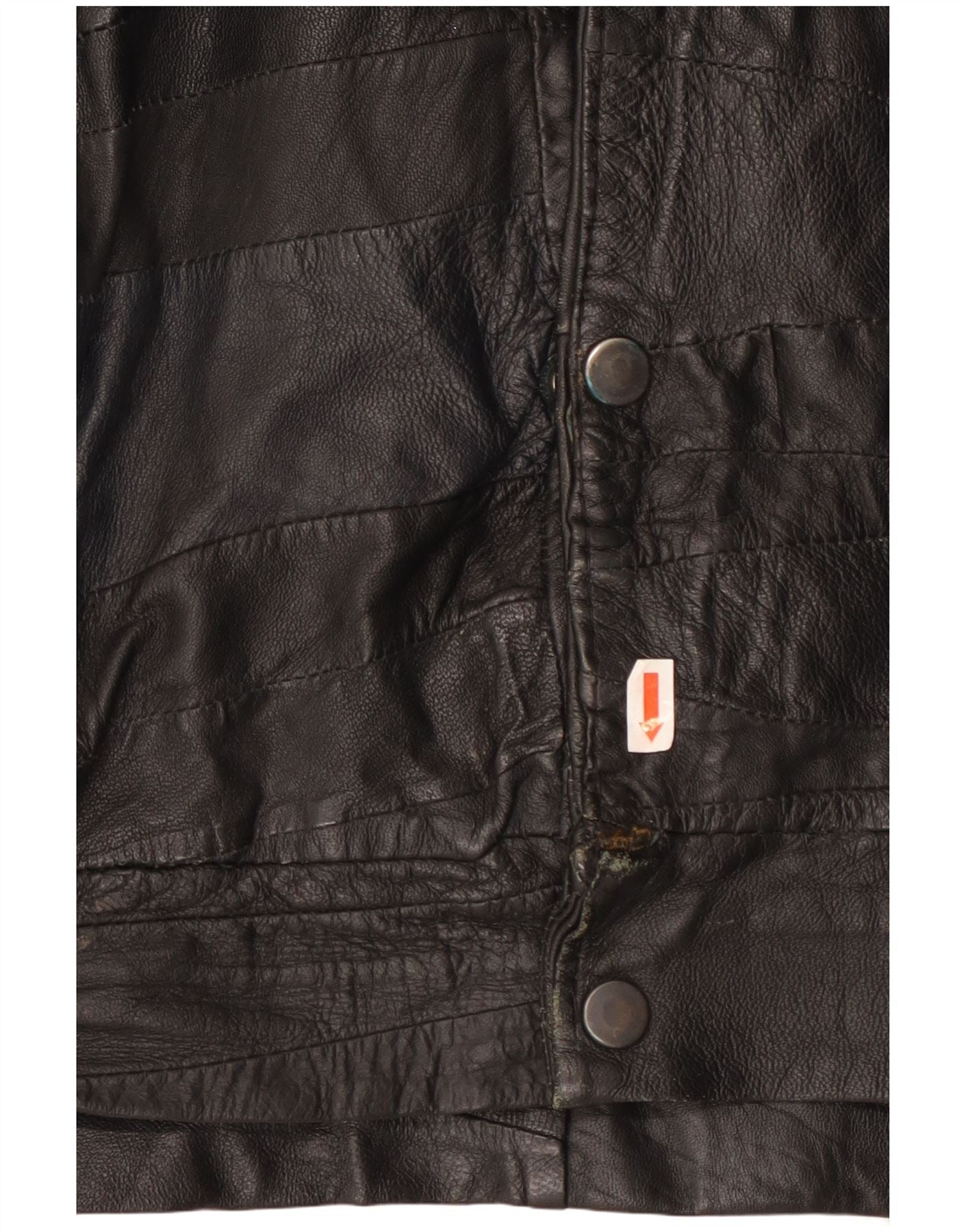 - AI opis: Ova vintage muška kožna jakna izrađena je od crne kože koja nudi prepoznatljivu teksturu. Ima dekolte s ovratnikom i kopčanje sprijeda. Šišmiš kratki rukavi pružaju opuštenu siluetu. Elastični struk osigurava udobno pristajanje. Tonski gumbi služe kao suptilan naglasak. Uključeni su praktični džepovi. Ukupni stil odražava estetiku 80-ih.