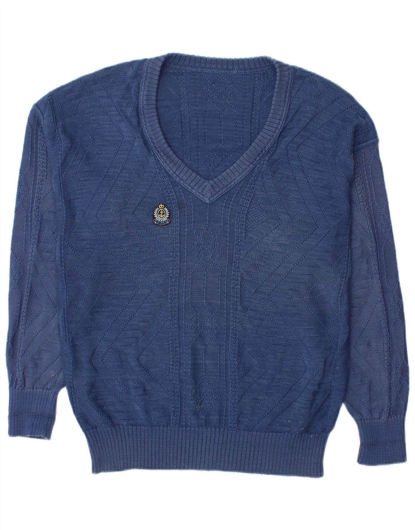 Vintage muški džemper s V-izrezom IT 48 srednje plavi pamuk