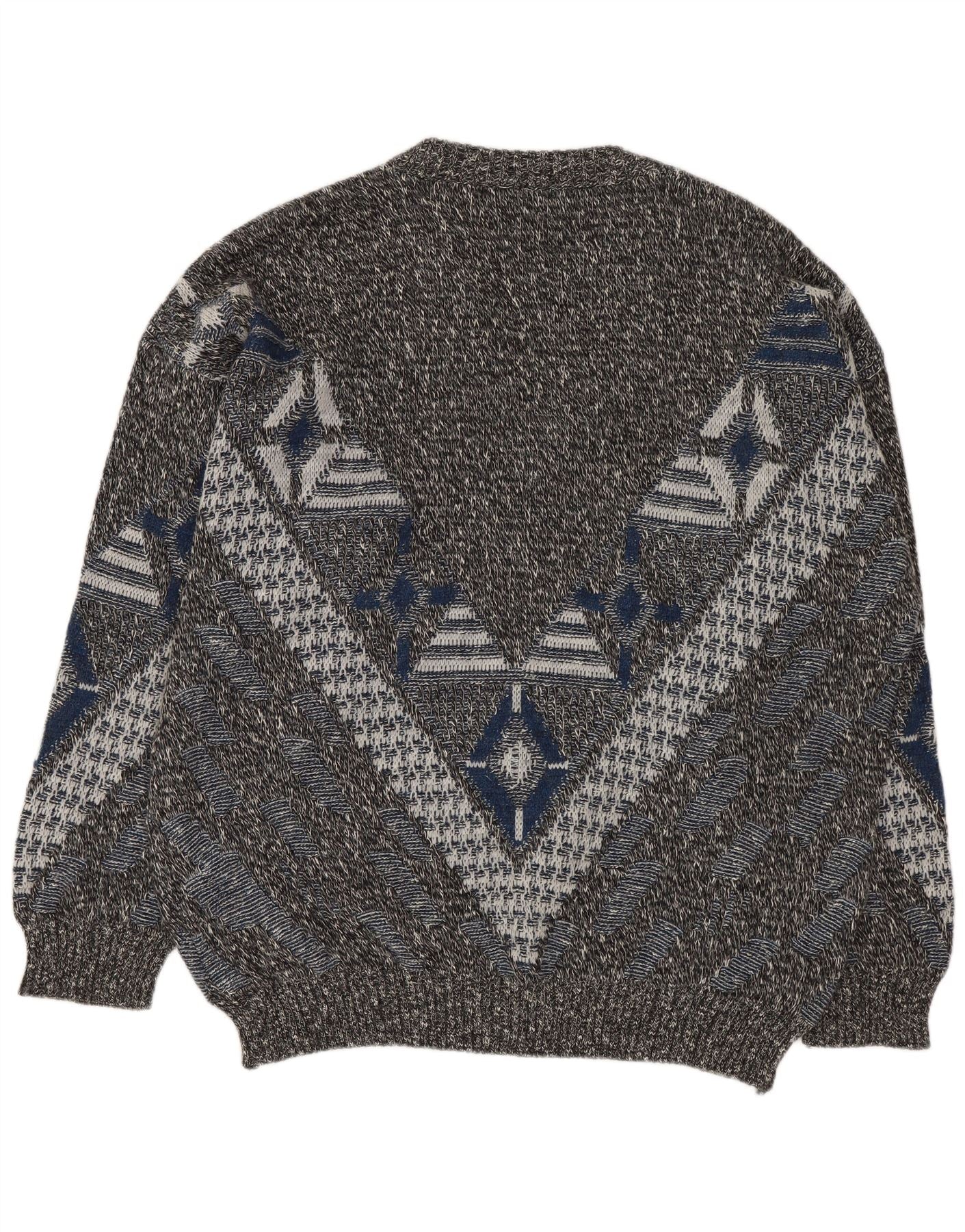 VINTAGE Muški džemper s V-izrezom UK 46/48 2XL Višebojni geometrijski