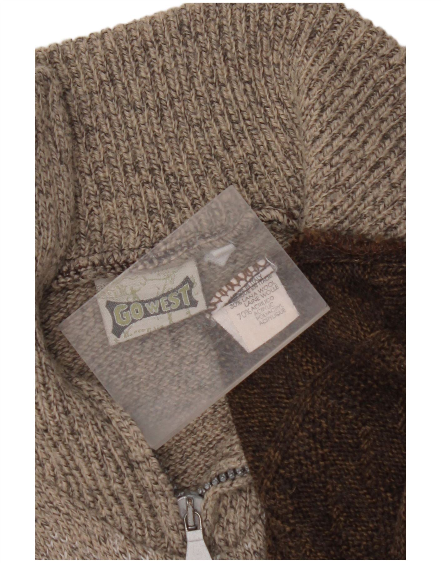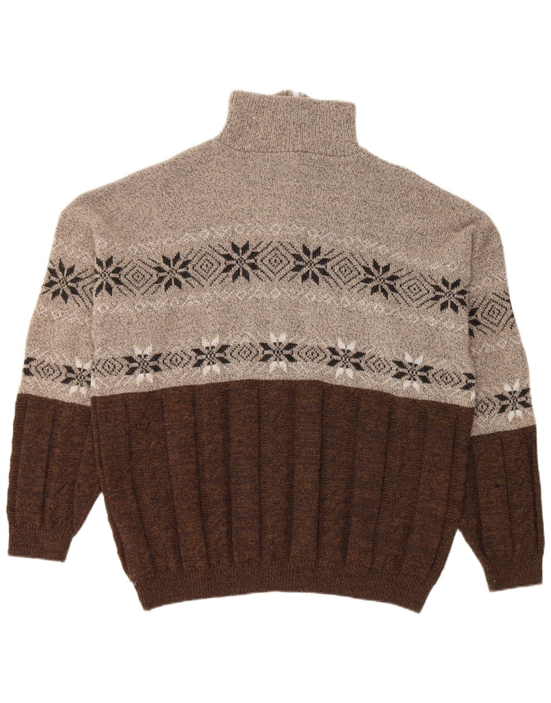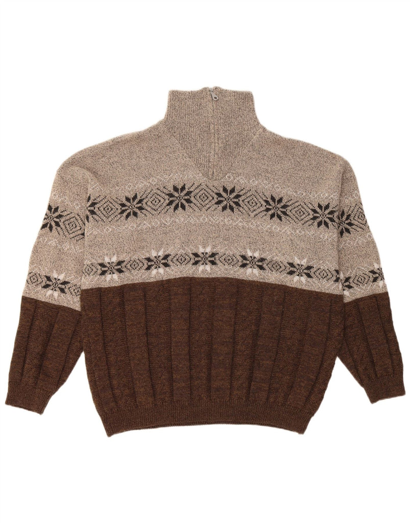 VINTAGE muški džemper s izrezom s patentnim zatvaračem XL smeđe Fair Isle vunene boje