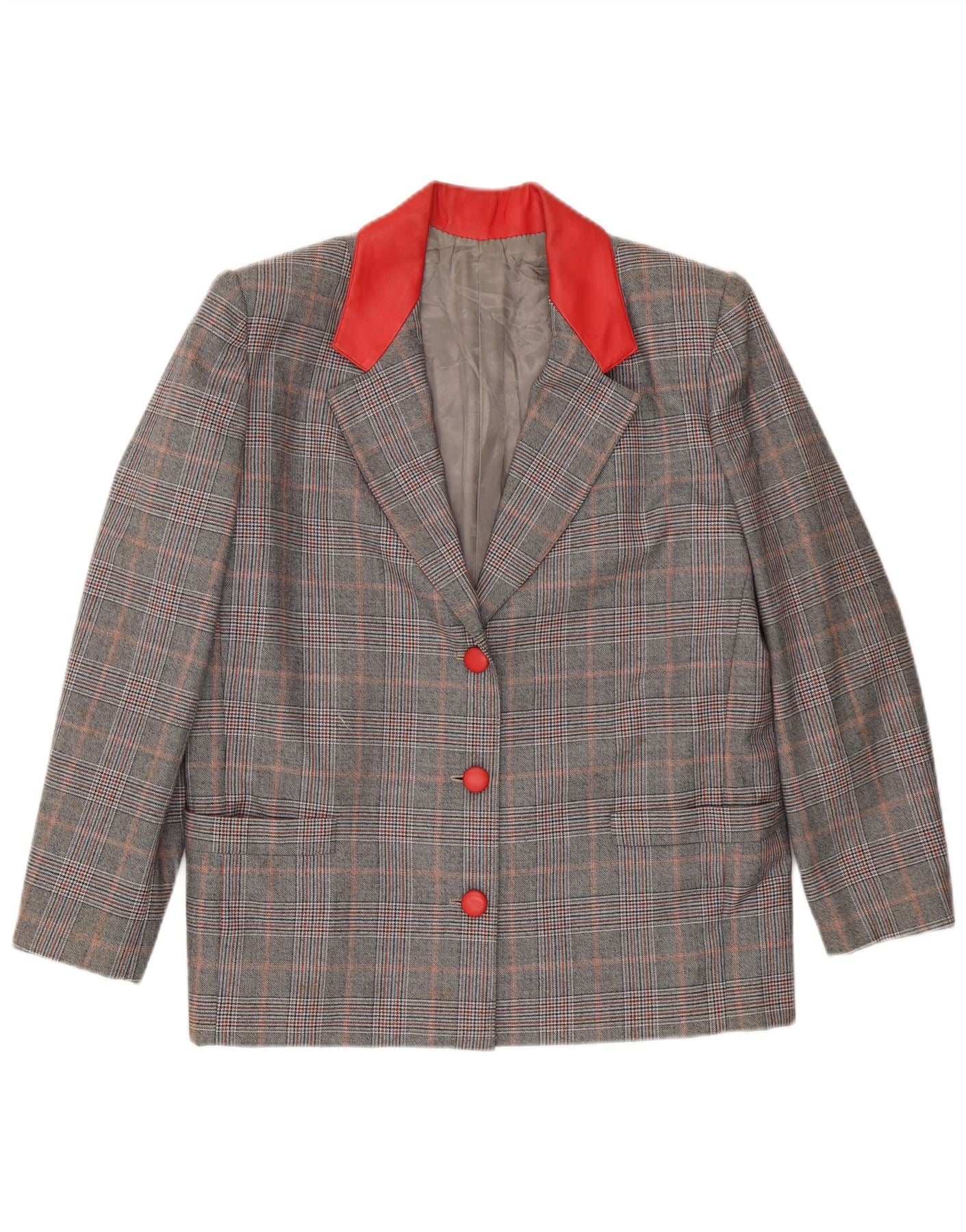 VINTAGE ženski sako s 3 gumba UK 16 Veliki sivi karirani