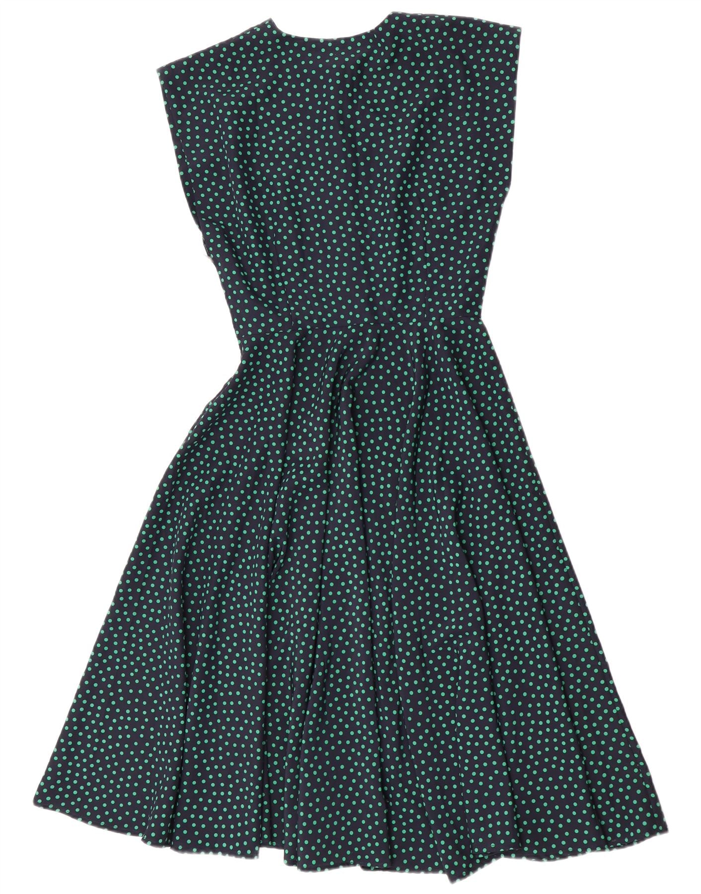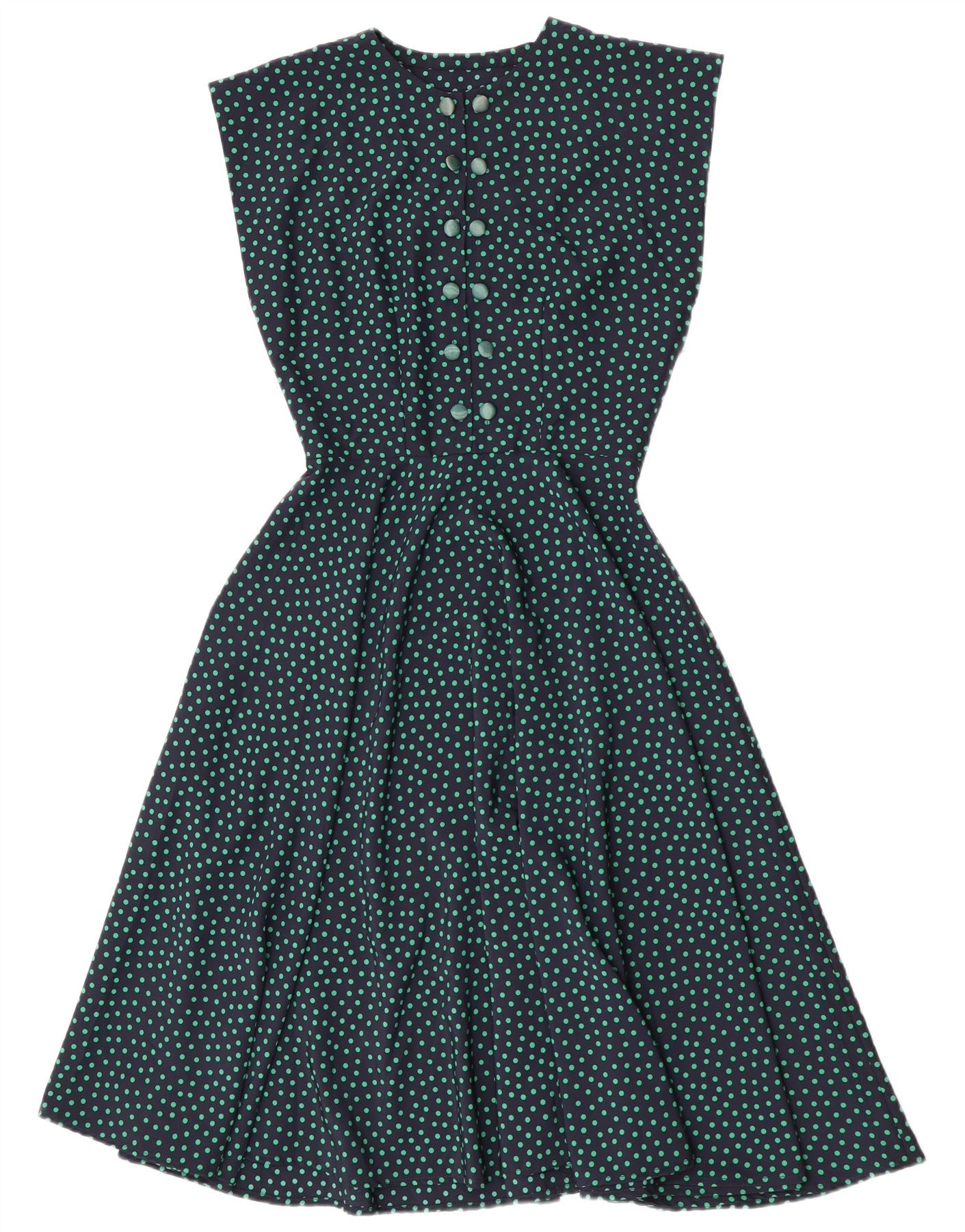 Vintage ženska haljina A-kroja UK 10 Mala tamnoplava točkasta
