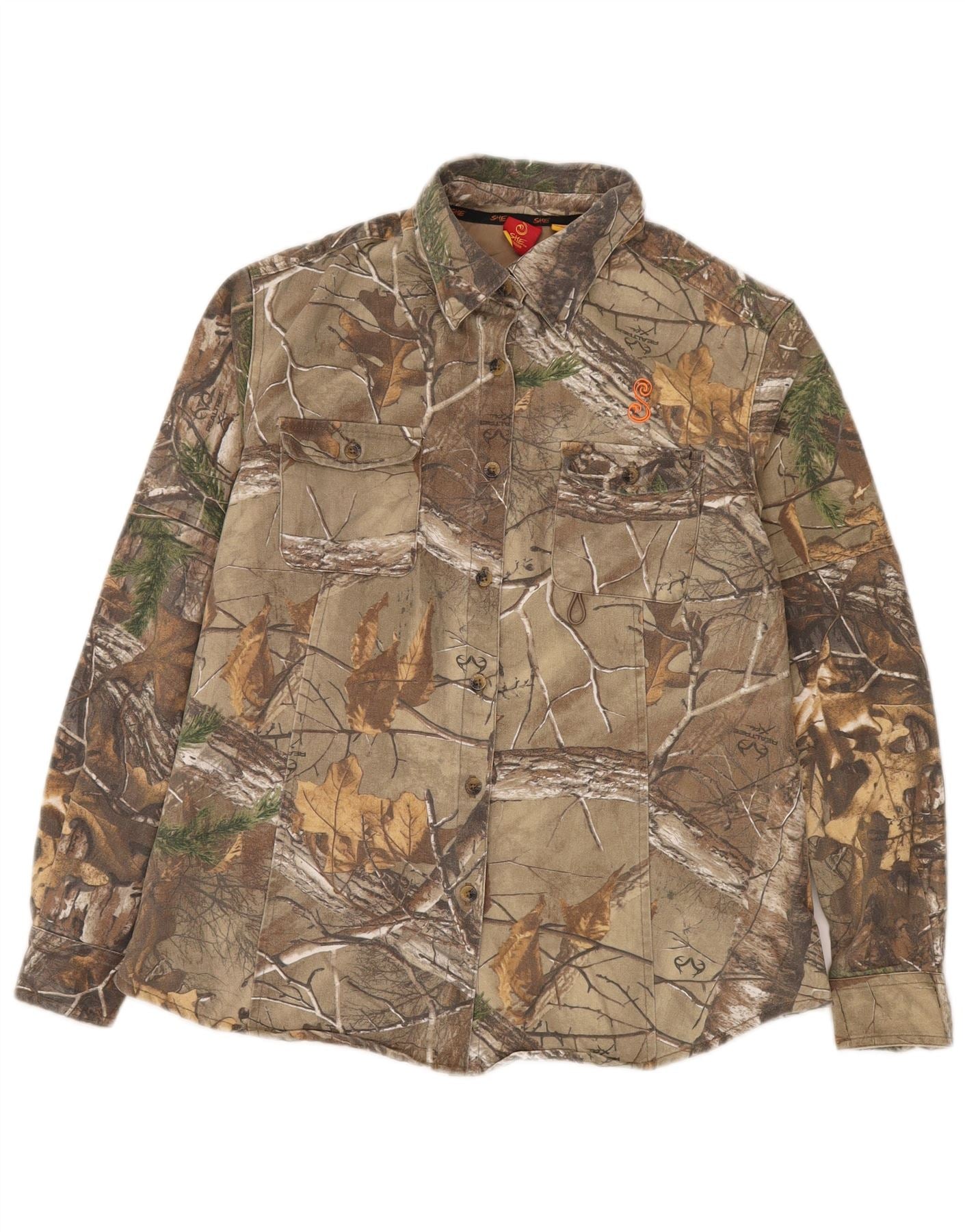 VINTAGE ženska košulja s apstraktnim uzorkom UK 16 Veliki kaki pamuk u blokovima