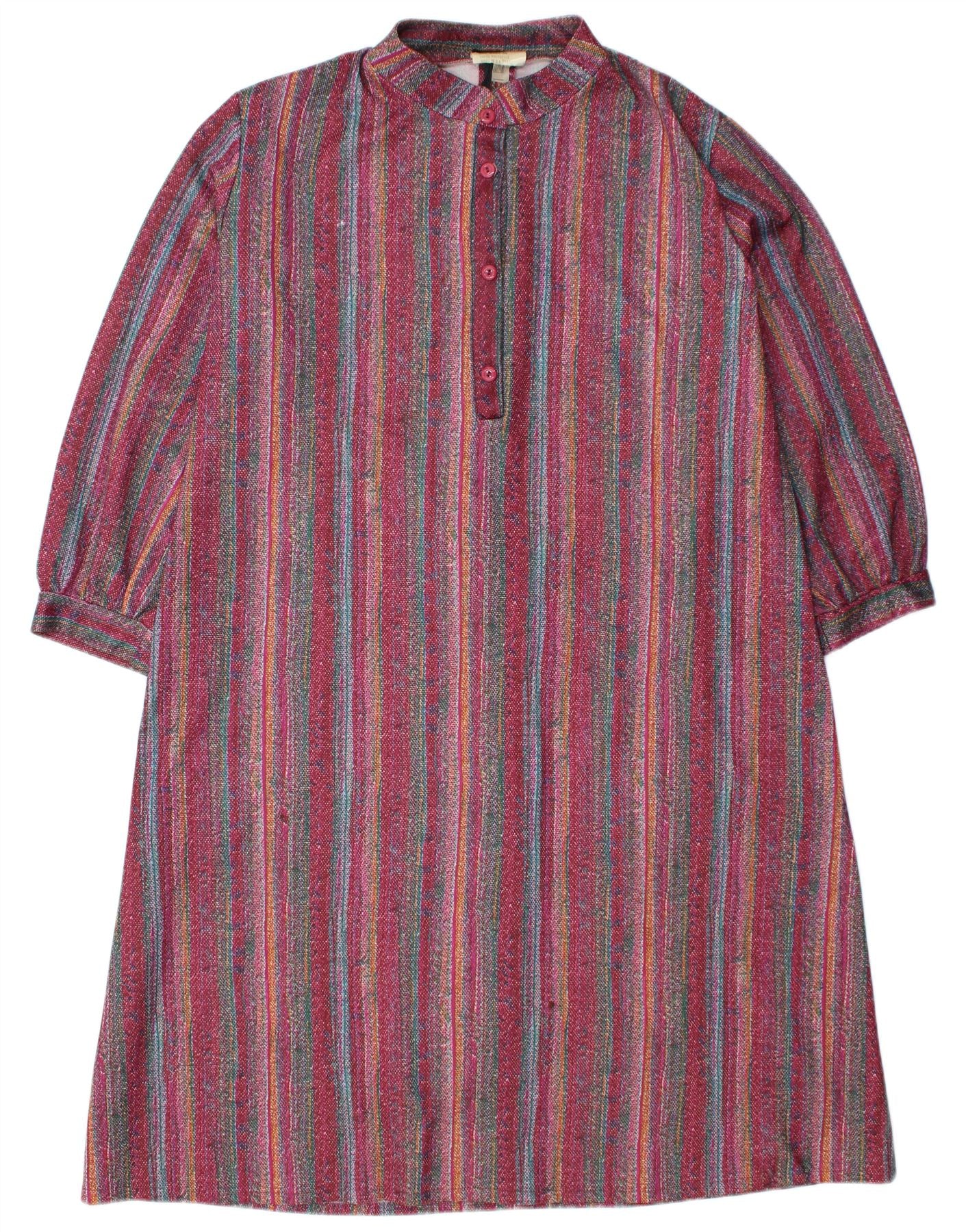 VINTAGE ženska osnovna haljina UK 26 4XL bordo prugasti poliester