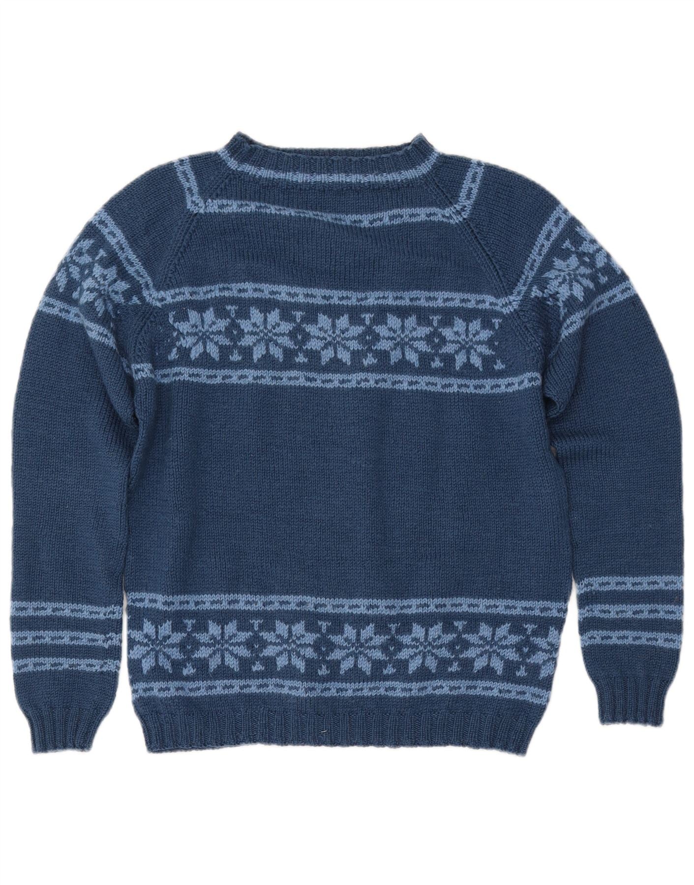 VINTAGE ženski džemper s brodskim izrezom UK 12 Srednje mornarsko plavi Fair Isle
