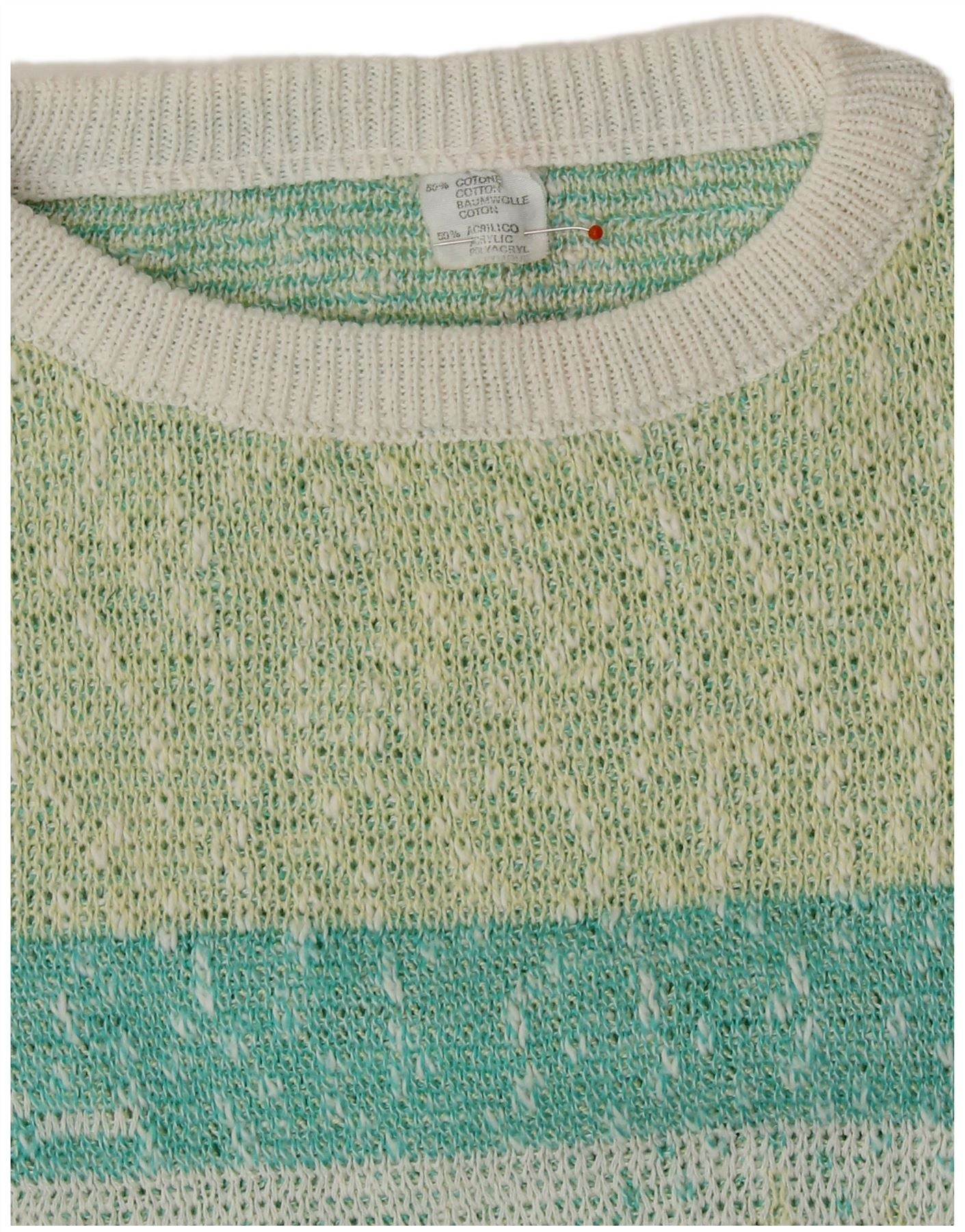 VINTAGE ženski džemper s veznim izrezom UK 16 Velike raznobojne pruge