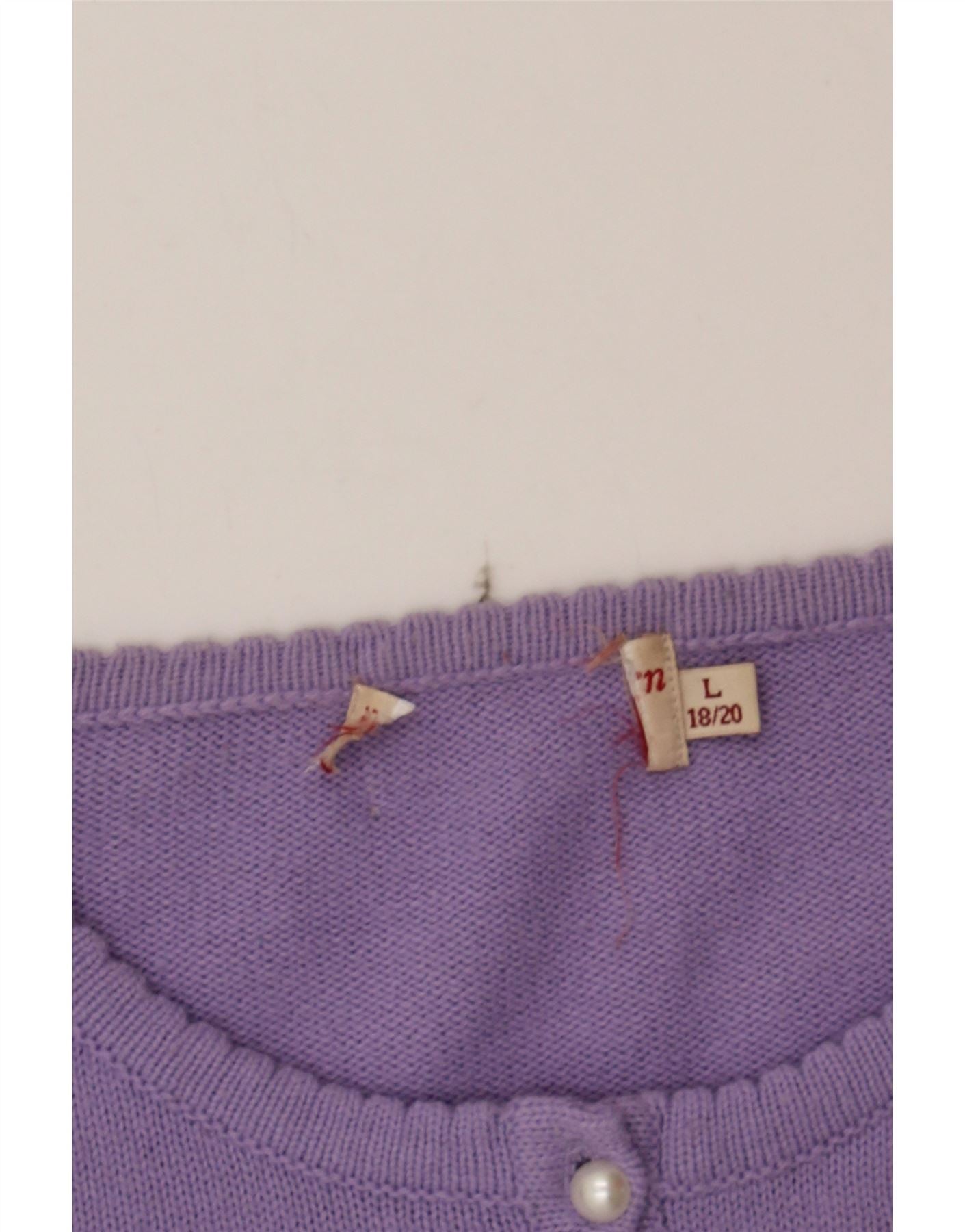 VINTAGE Womens Cardigan Sweater UK 16 Large Purple Floral Acrylic