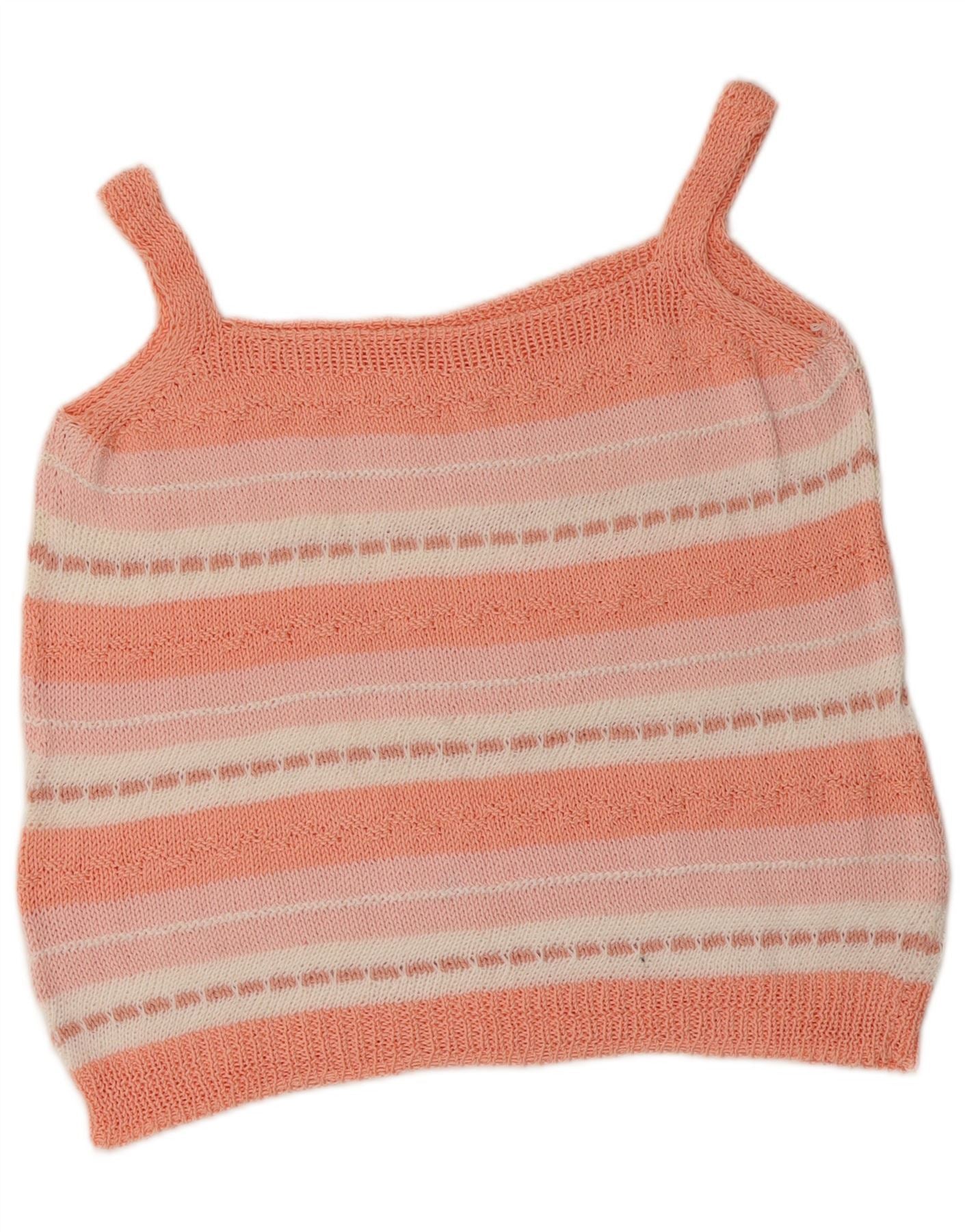 VINTAGE ženski kratki pleteni Cami top UK 12 srednje ružičasto na pruge