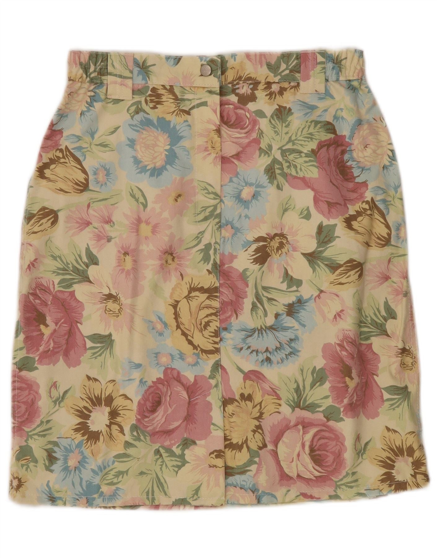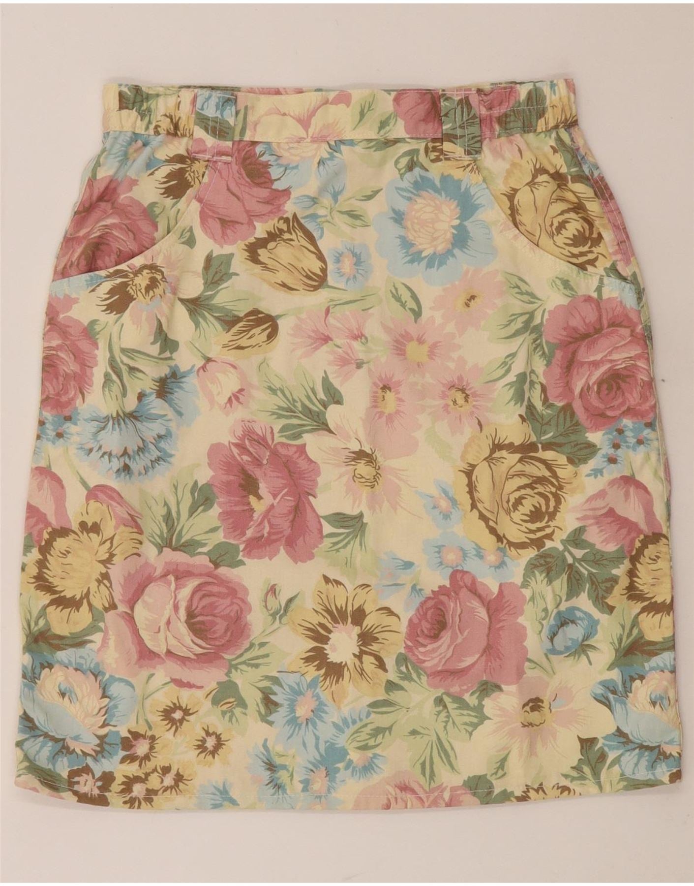 VINTAGE ženska ravna suknja visokog struka W30 srednje žuta cvjetna