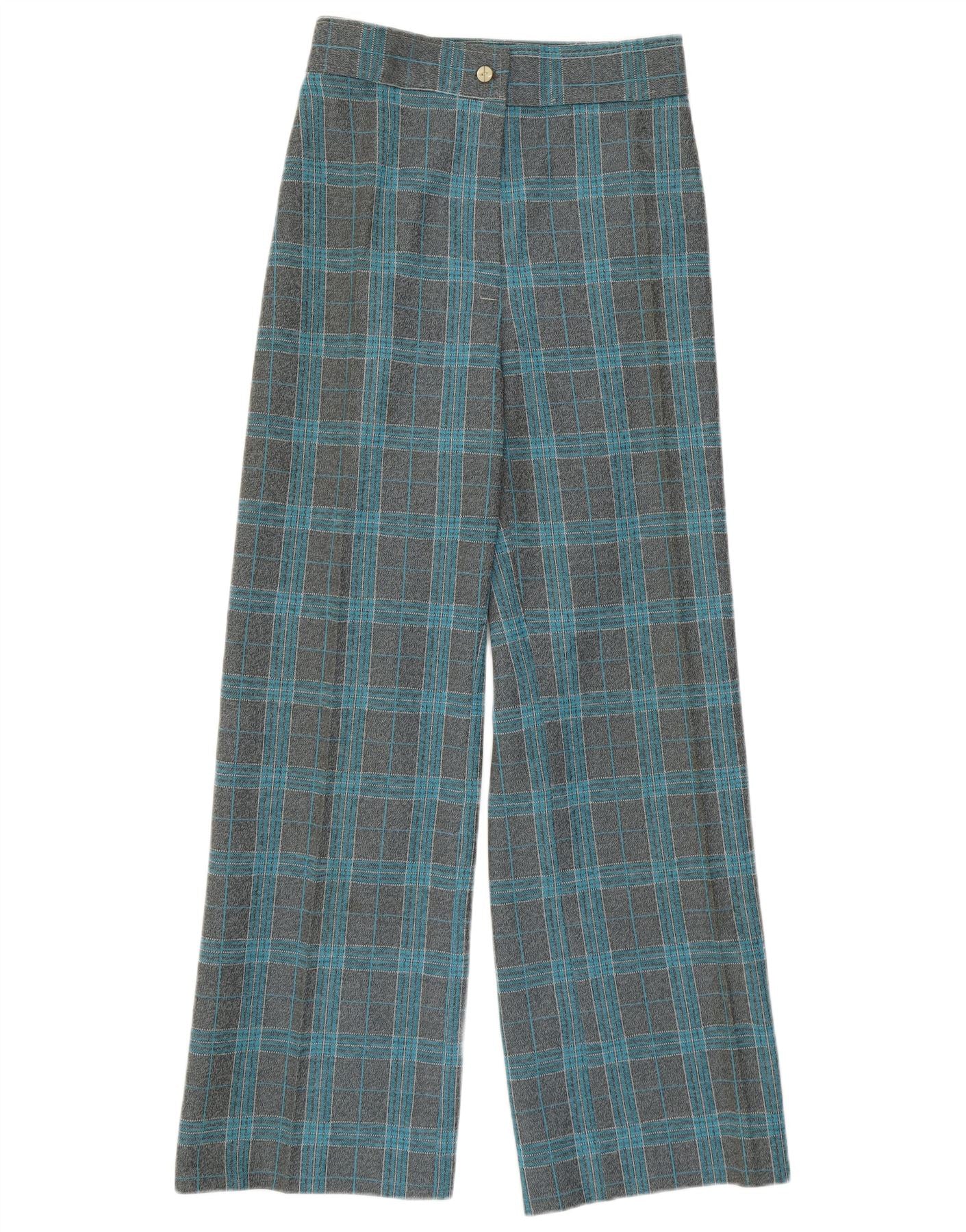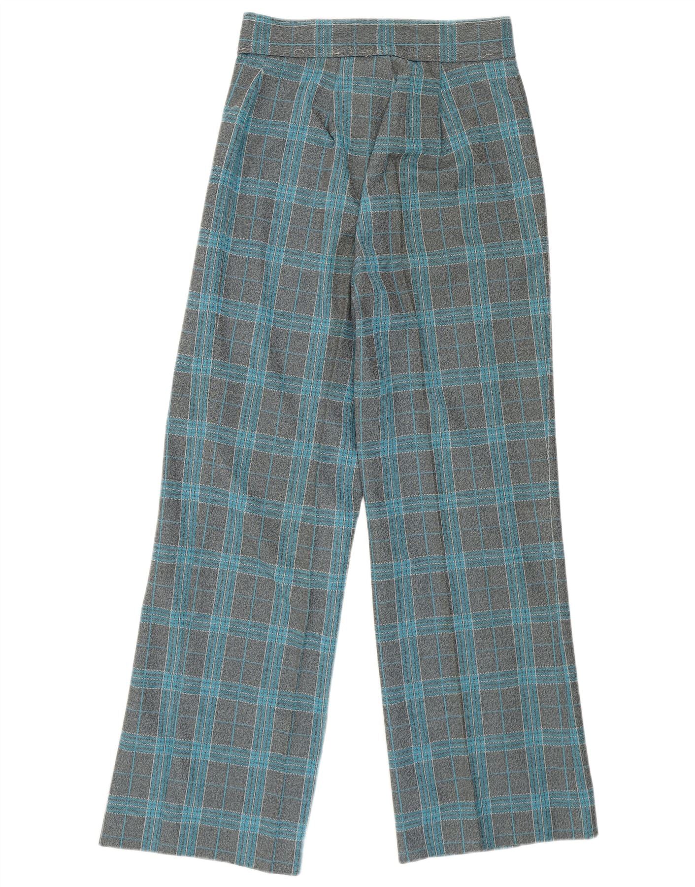 VINTAGE Ženske ležerne hlače širokih nogavica visokog struka W27 L29 sive karirane