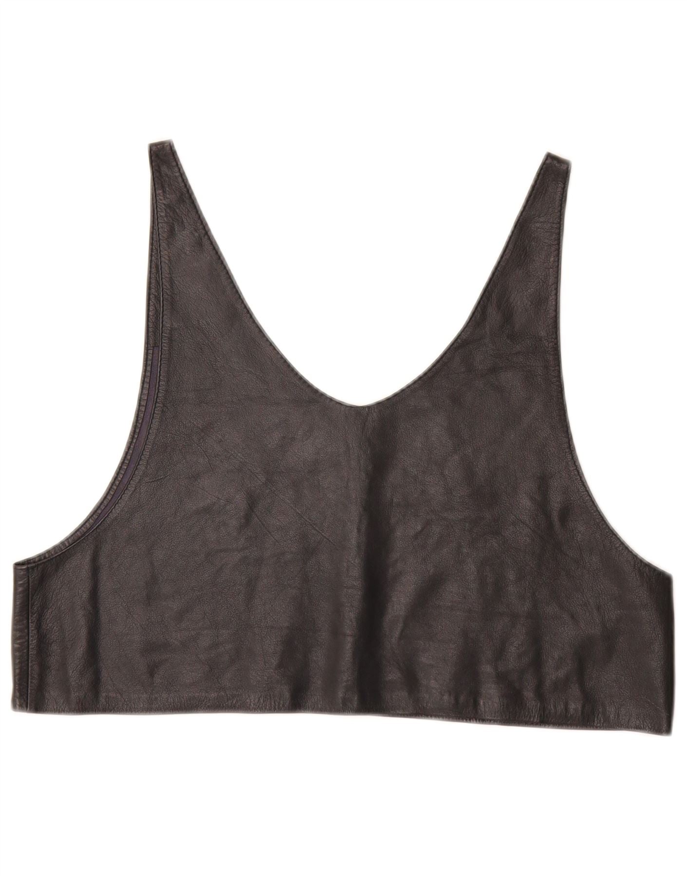 VINTAGE ženski kožni kratki top UK 12 srednje crne boje