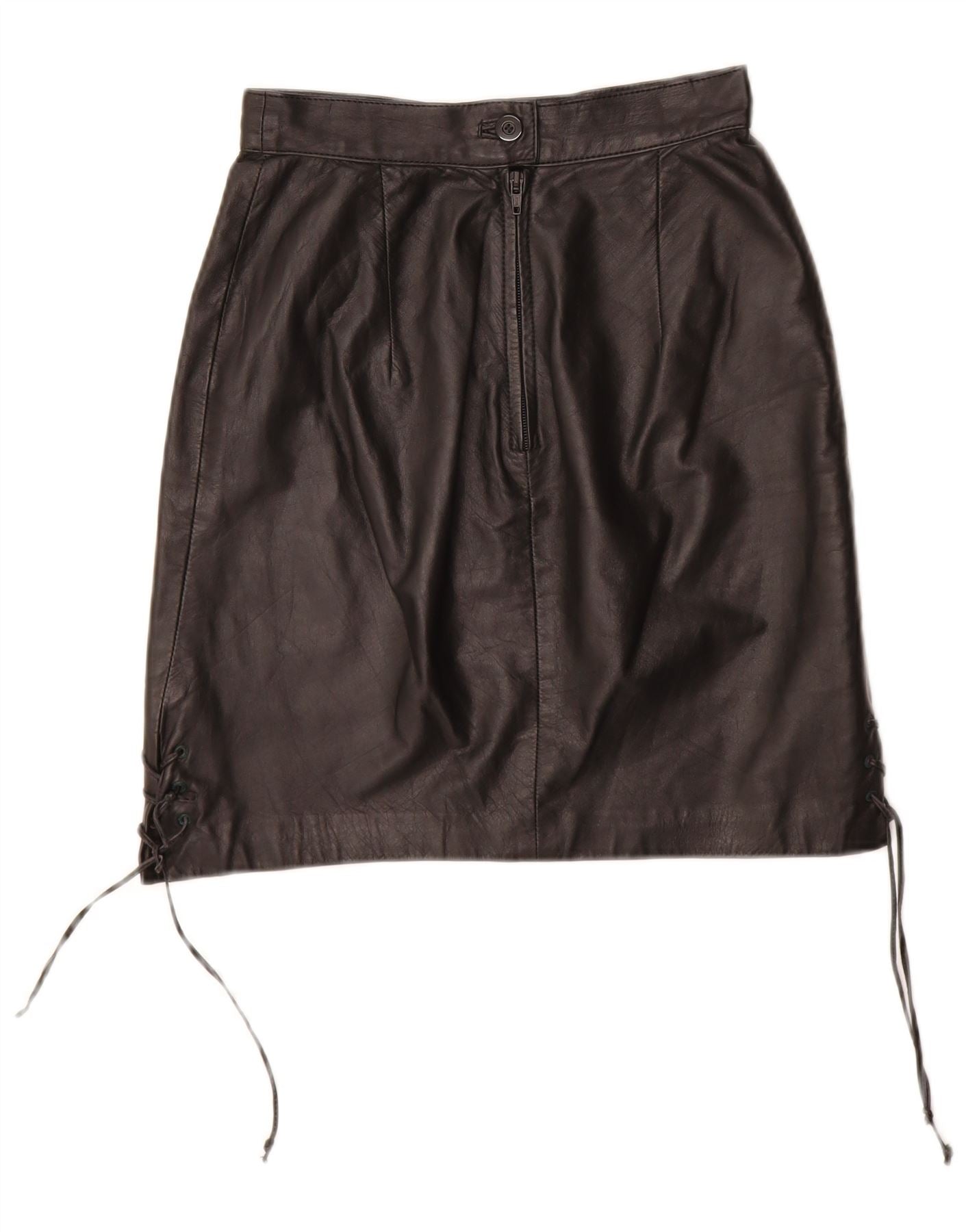 VINTAGE ženska kožna suknja EU 34 XS W24 crna koža