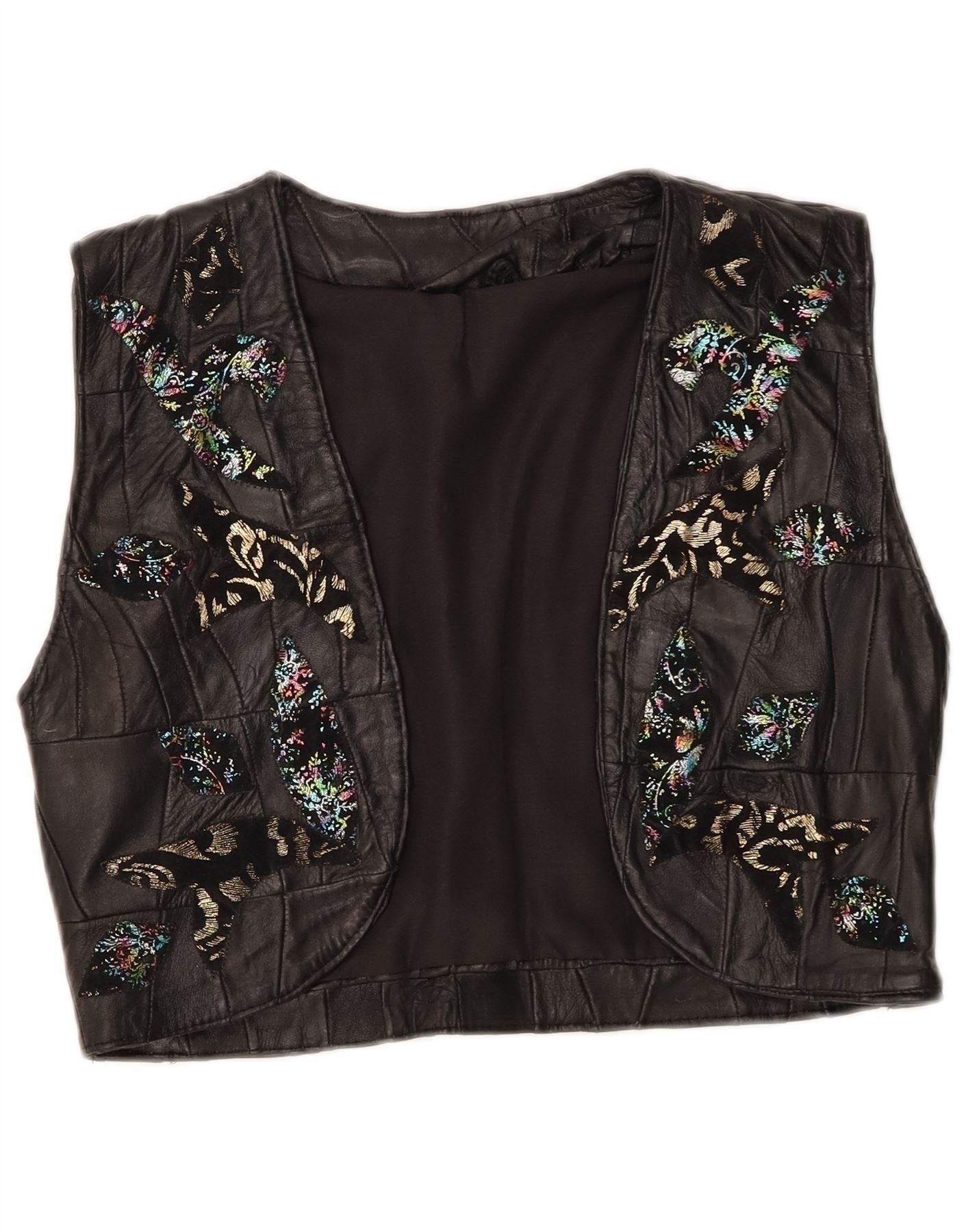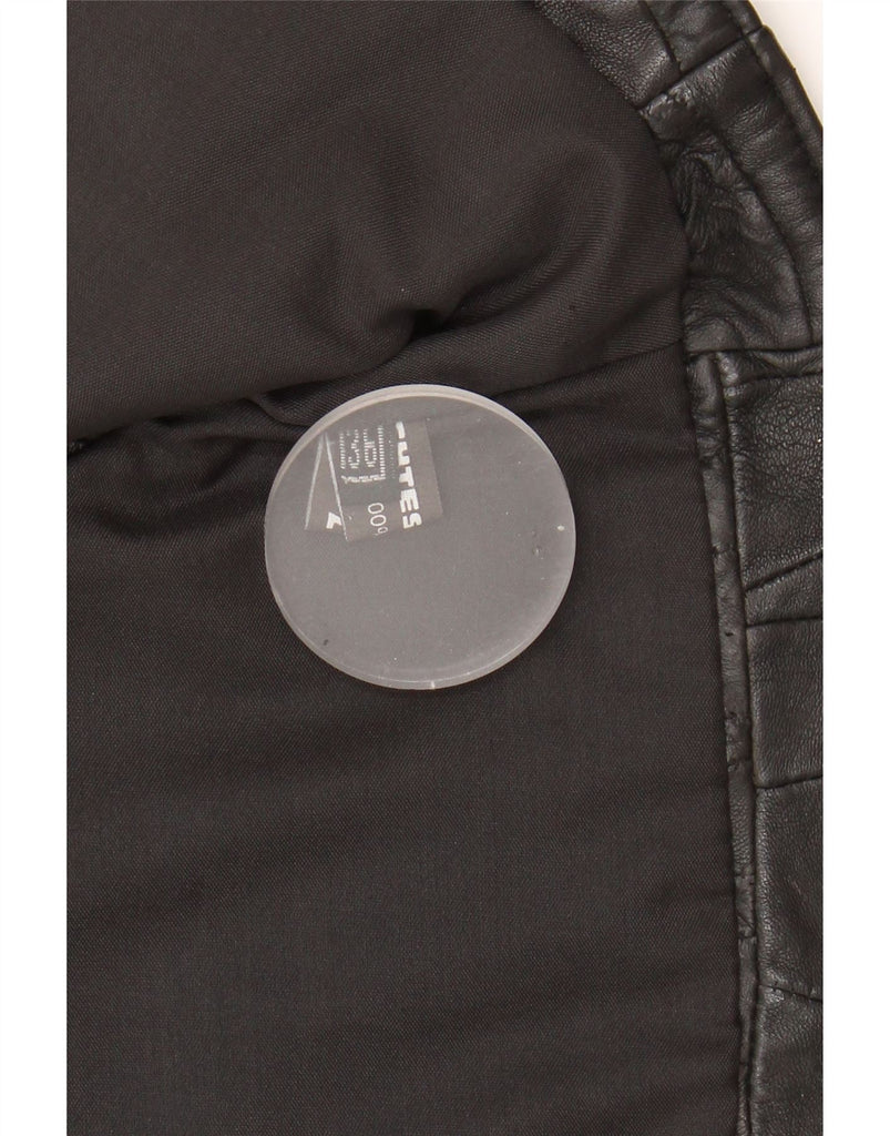 VINTAGE Womens Leather Waistcoat EU 36 Small Black Patchwork Leather