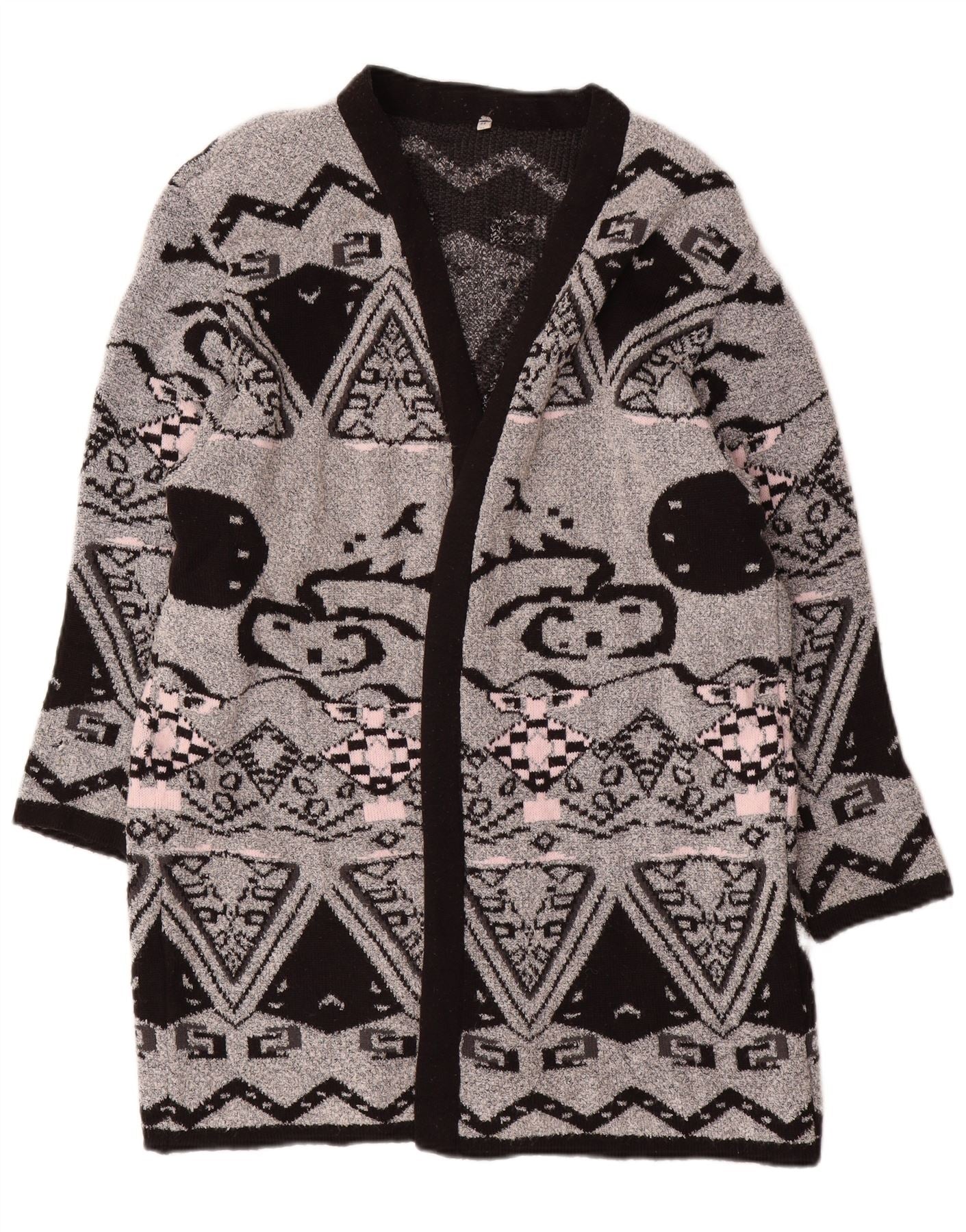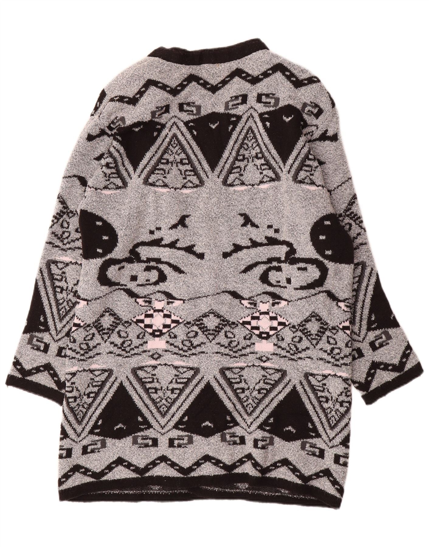 VINTAGE ženski dugi otvoreni kardigan pulover EU 44 XL sivi geometrijski