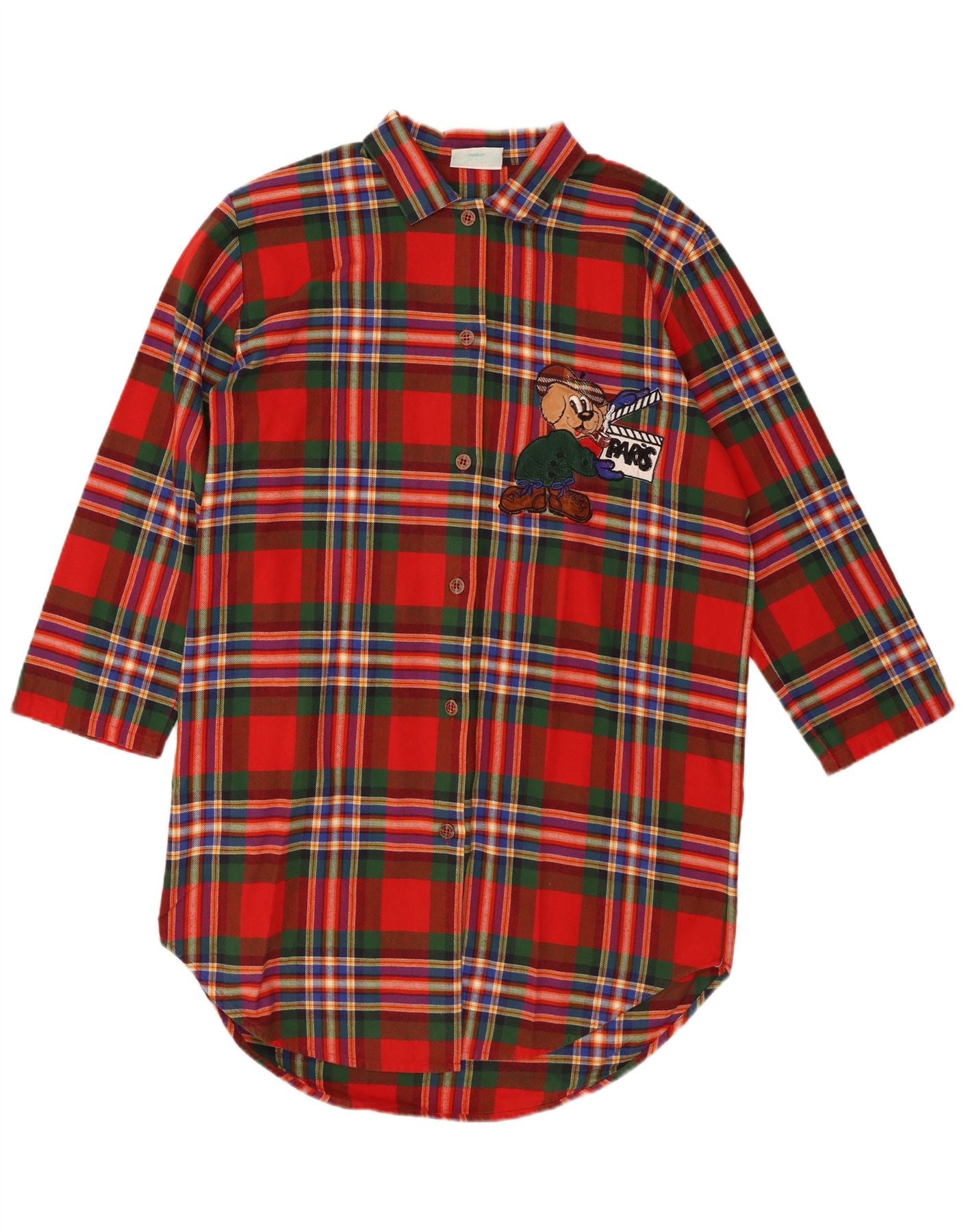 VINTAGE Ženska prevelika grafička košulja haljina UK 14 Srednje crvena karirana