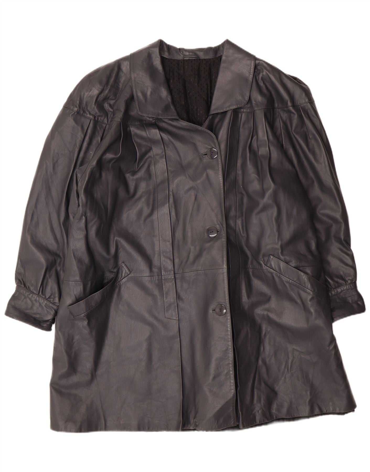Vintage ženski preveliki kožni kaput IT 44 srednje crne kožne klasike