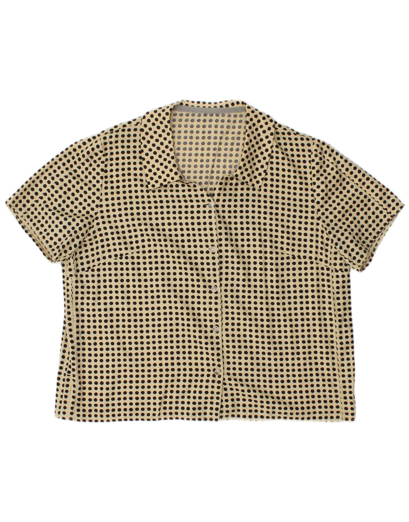 VINTAGE ženska prevelika košulja bluza UK 14 srednje žuta na točkice