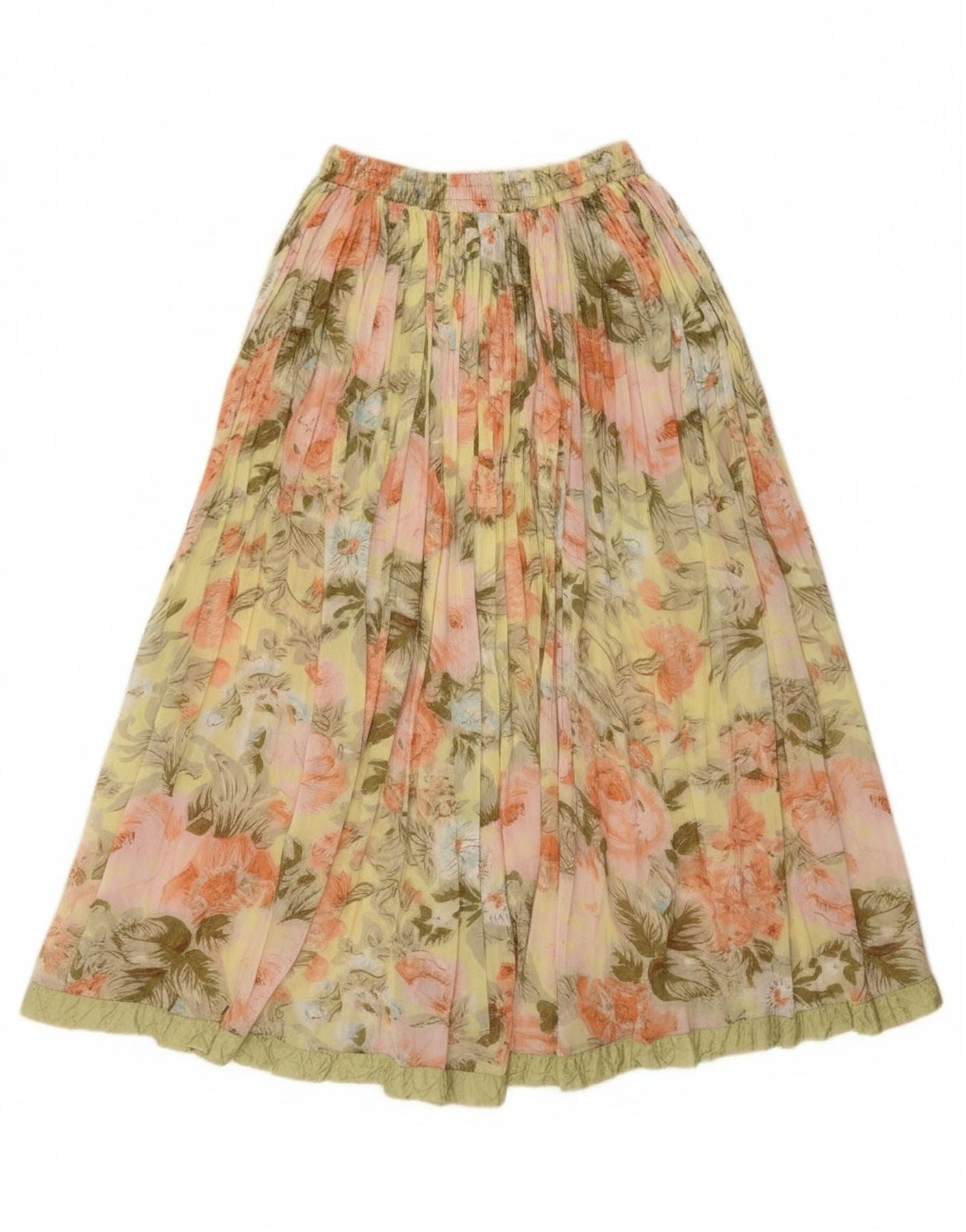 Vintage ženska plisirana suknja W26 mala zelena cvjetna