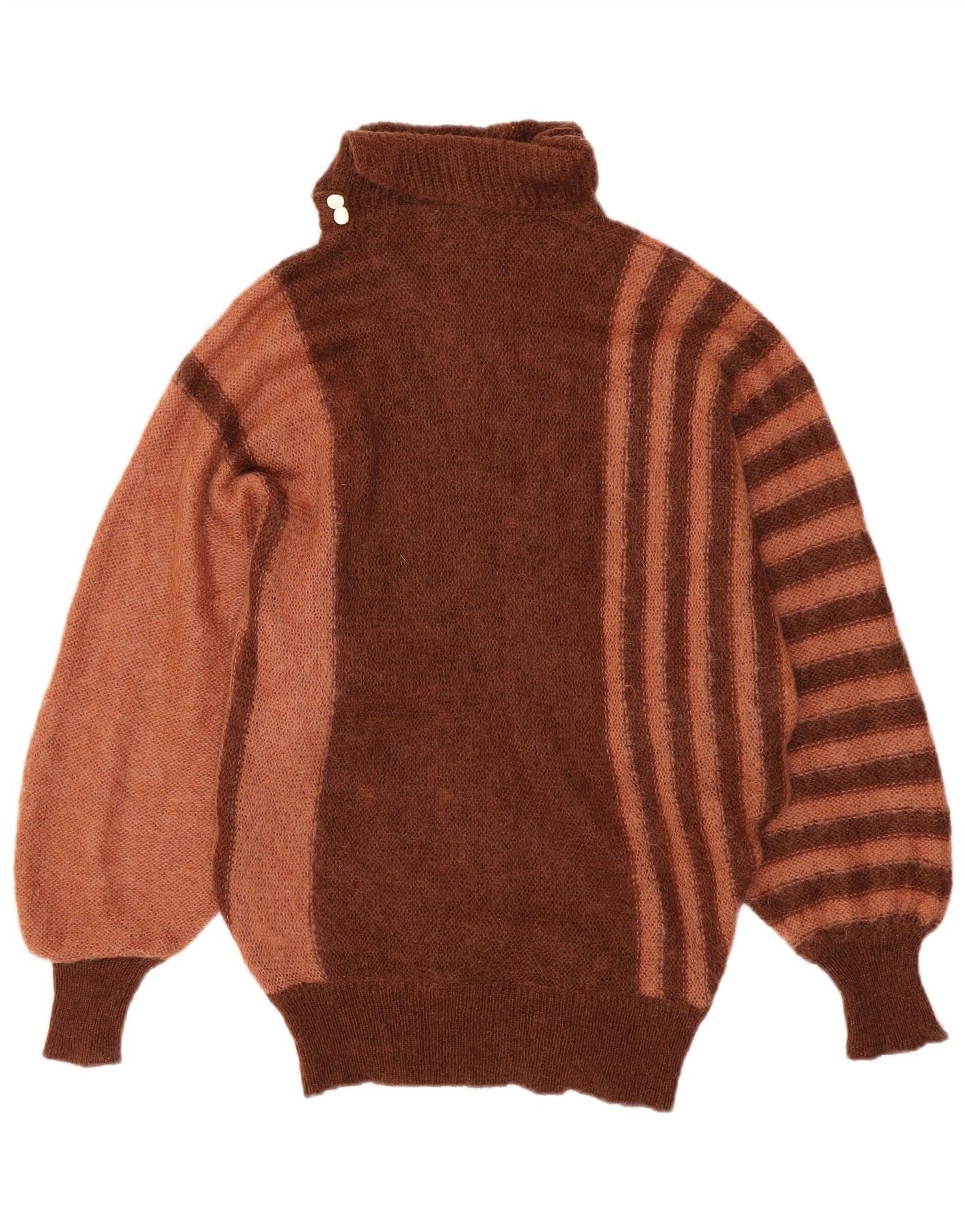 VINTAGE ženski pulover s rol izrezom UK 14 Veliki smeđi prugasti moher