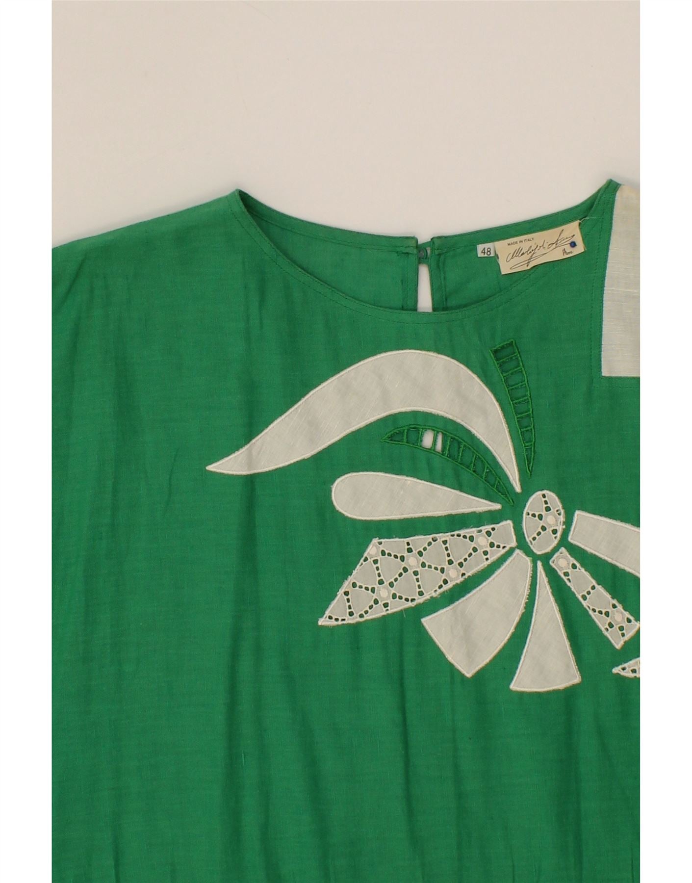 VINTAGE Womens Sheath Dress IT 48 XL Green Floral