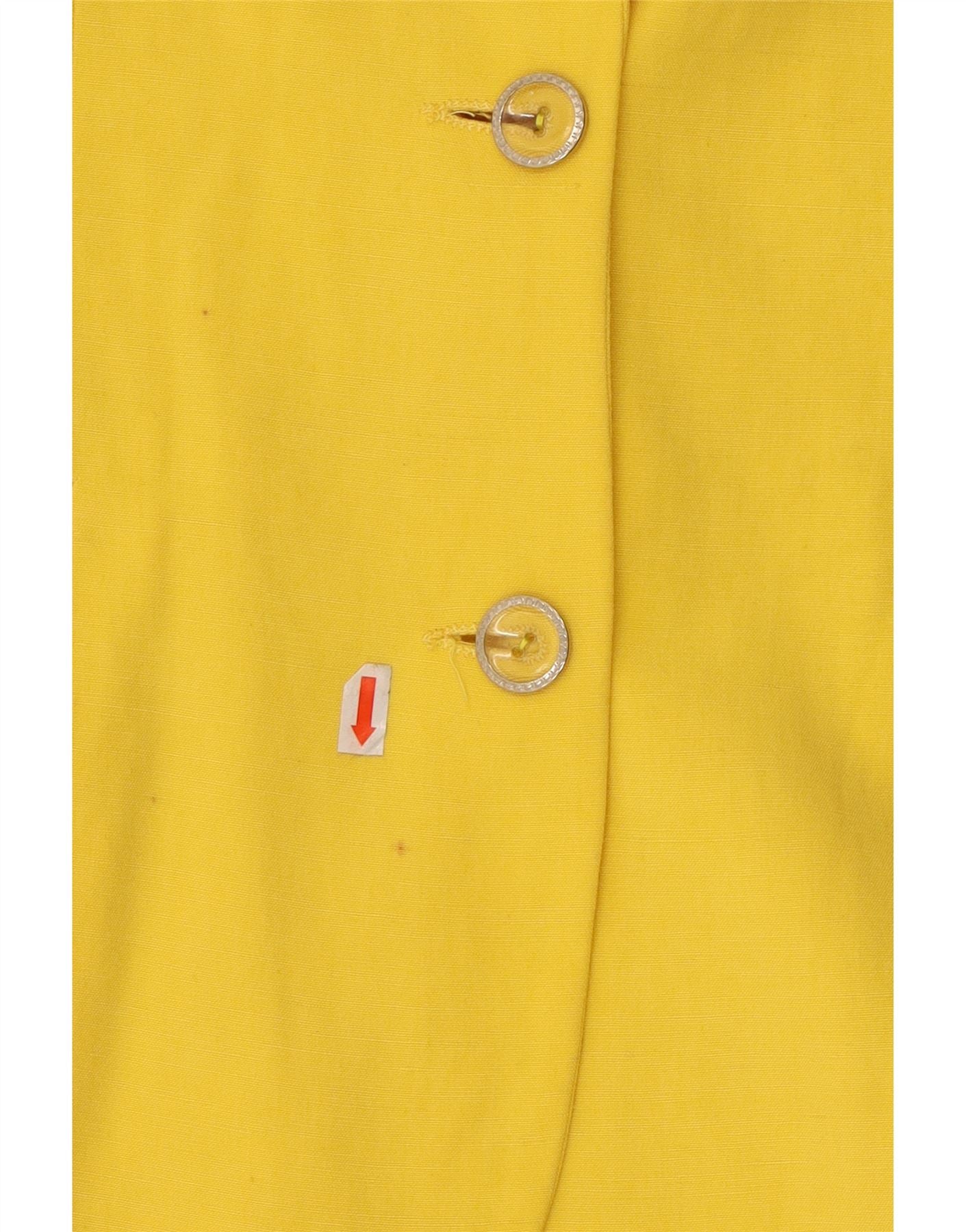 VINTAGE Ženska jakna sako kratkih rukava s 2 gumba UK 12 srednje žuta
