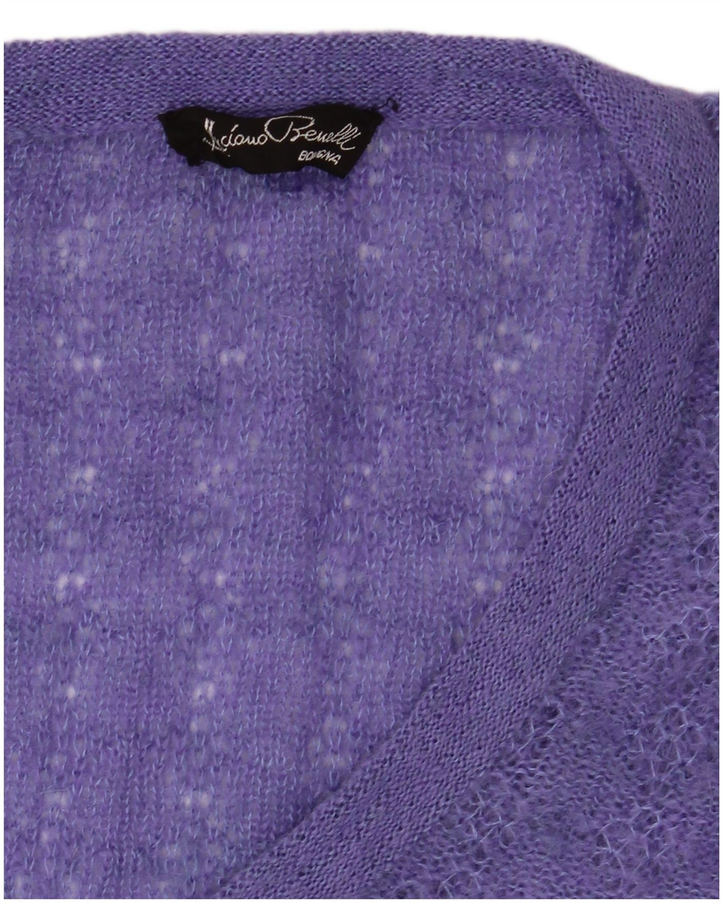 VINTAGE ženski džemper kratkih rukava s V-izrezom UK 14 srednje ljubičasta
