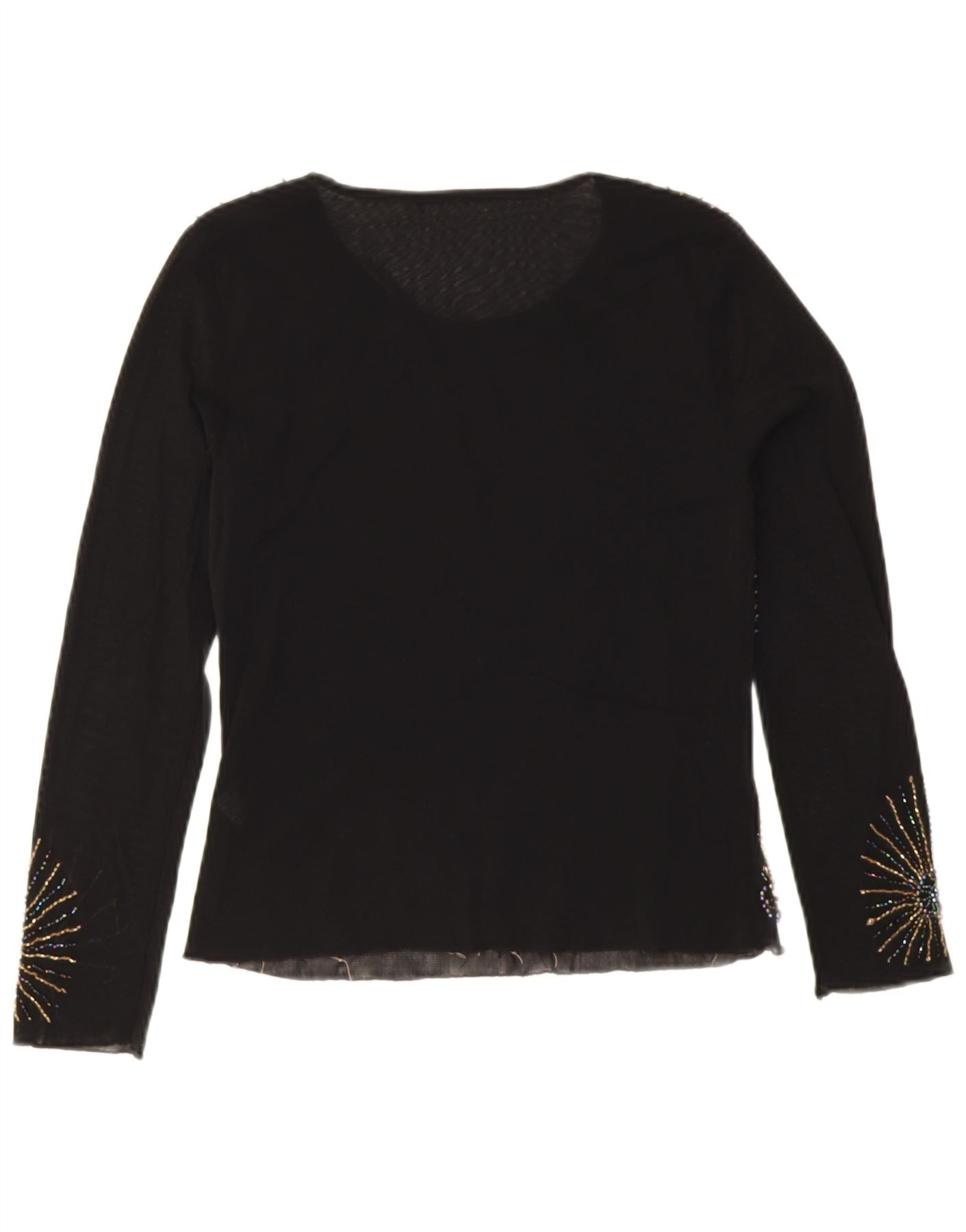 Vintage ženska majica dugih rukava UK 10 Mala crna cvjetna viskoza