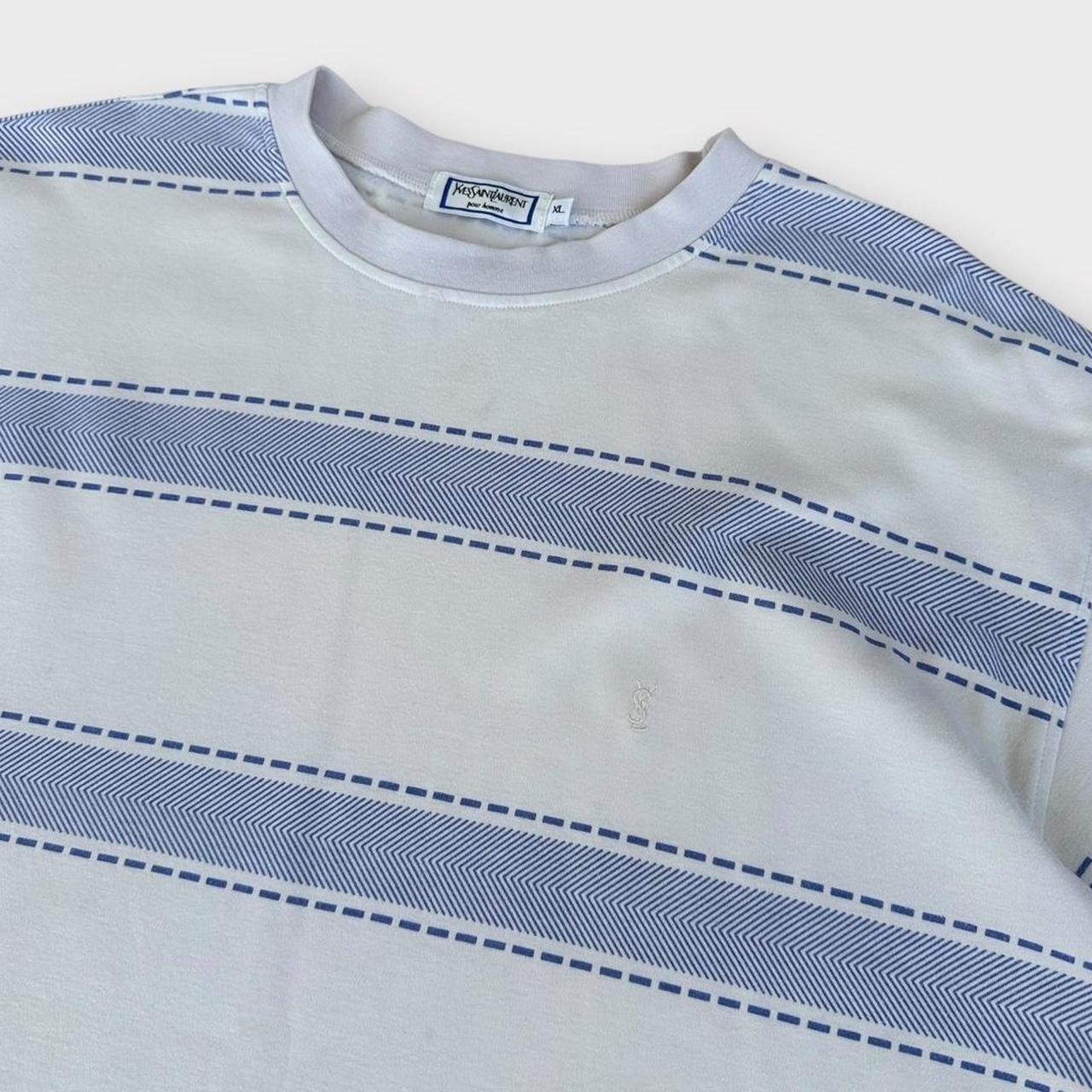 Vintage Yves Saint Laurent 90-ih majica s plavim i bijelim prugama s izvezenim logotipom na prsima