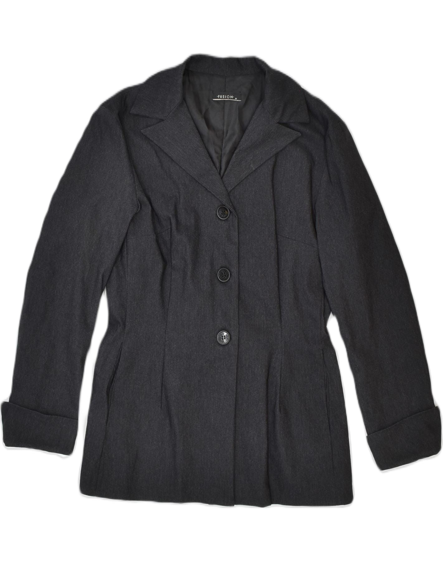 VINTAGE Ženska jakna sa 3 gumba UK 12 Srednji crni poliamid