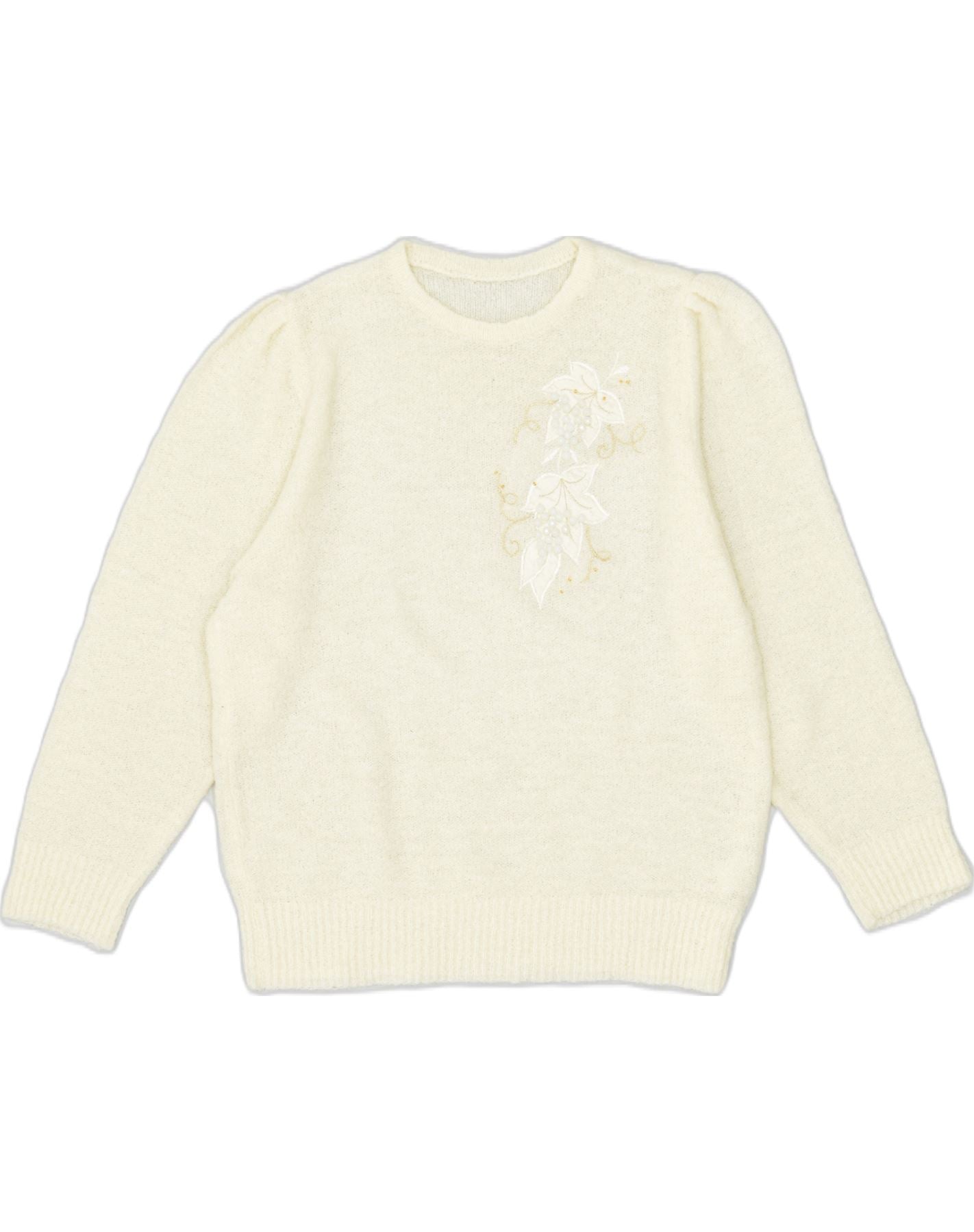 VINTAGE ženski džemper s okruglim izrezom UK 20 2XL sivobijeli cvijet