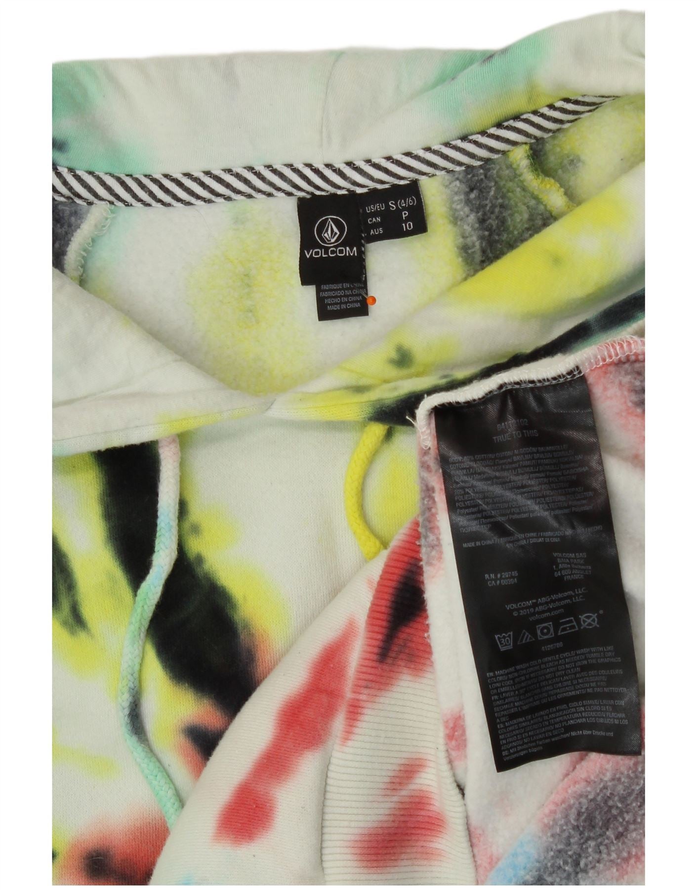 VOLCOM Womens Oversized Hoodie Jumper US 4/6 Small Multicoloured Tie Dye