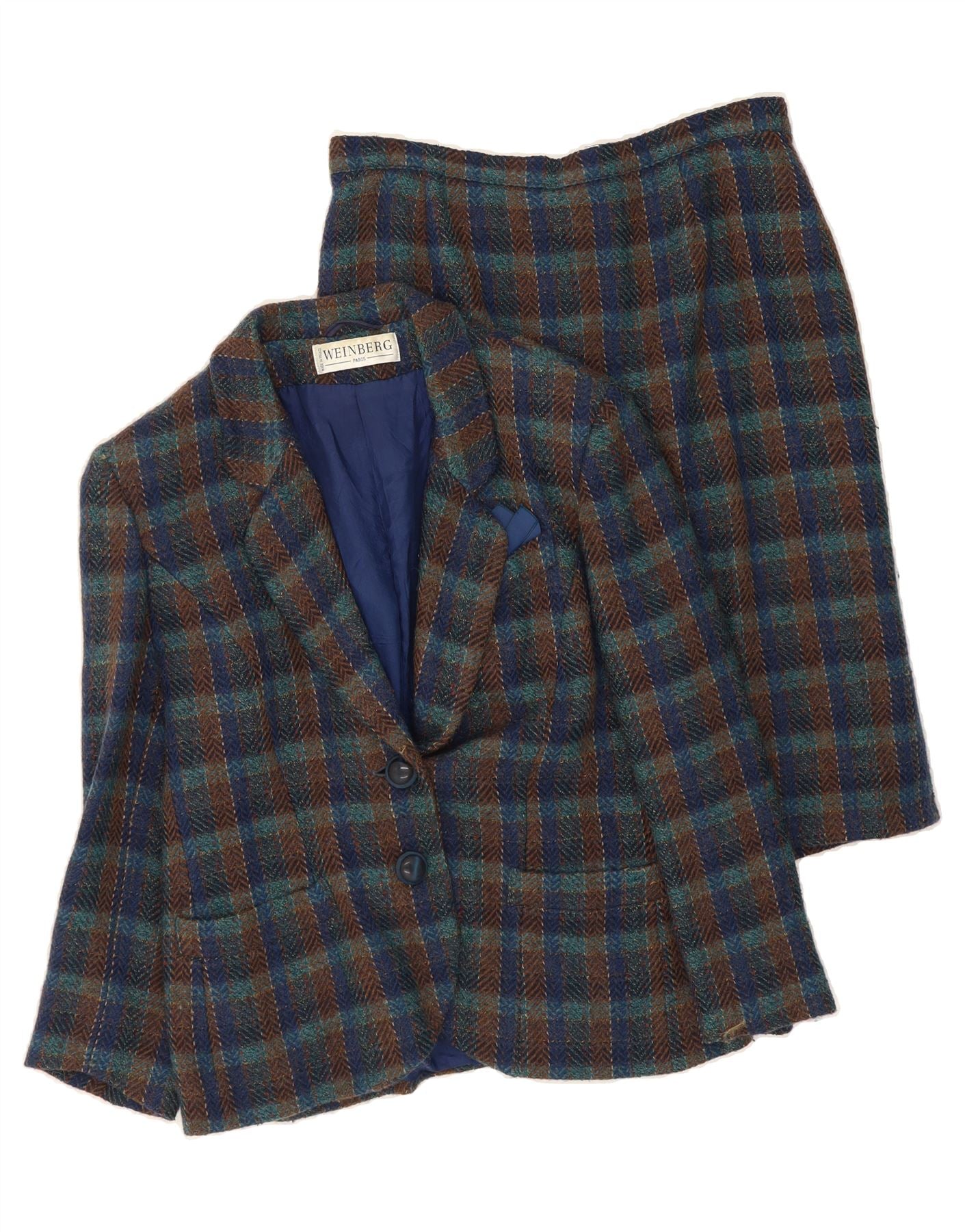 WEINBERG Womens 2 Button 2 Piece Skirt Set EU 44 XL W30 Navy Blue Chec