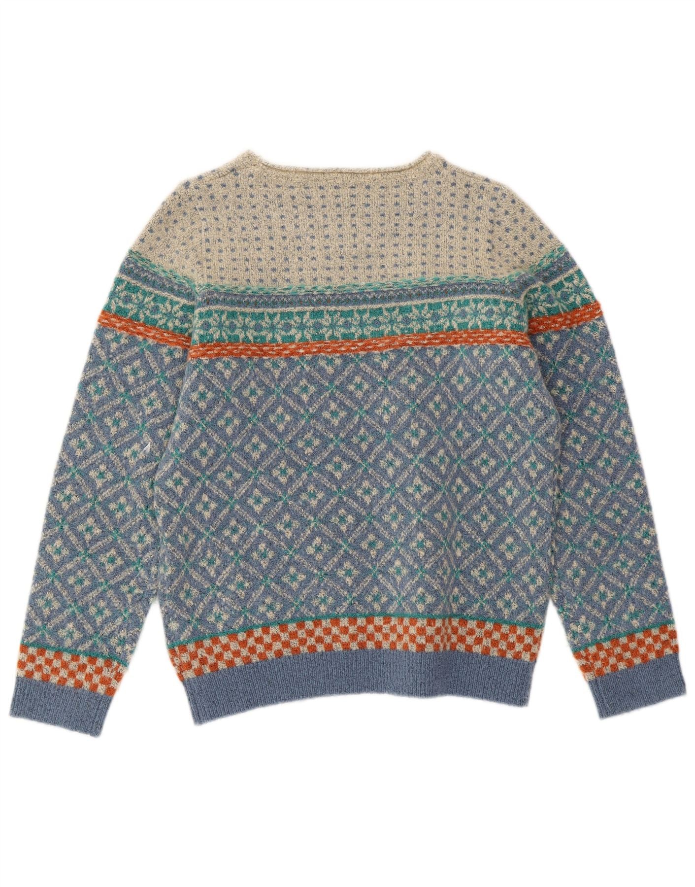 WEIRD FISH Ženski džemper s veznim izrezom UK 12 srednje plavi Fair Isle