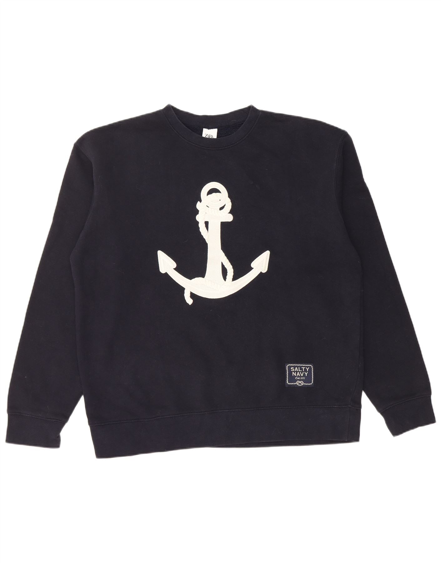 - AI opis: Ovaj Zara muški džemper izrađen je od udobnog crnog pletiva od mješavine pamuka. Ima klasičan okrugli ovratnik i duge rukave, što omogućuje pravilan kroj. Dizajn pulovera je poboljšan istaknutom grafikom bijelog sidra na prednjoj strani, dodajući jasan nautički naglasak. Ovaj komad kombinira ležernu udobnost s elegantnim detaljem inspiriranim morem.