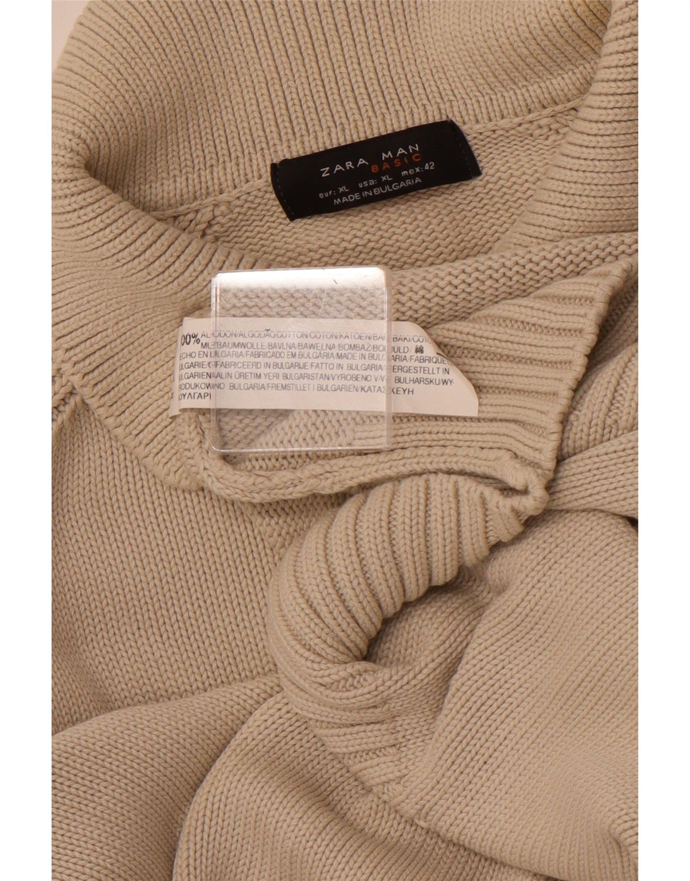 ZARA muški pulover s polo ovratnikom XL, bež pamuk
